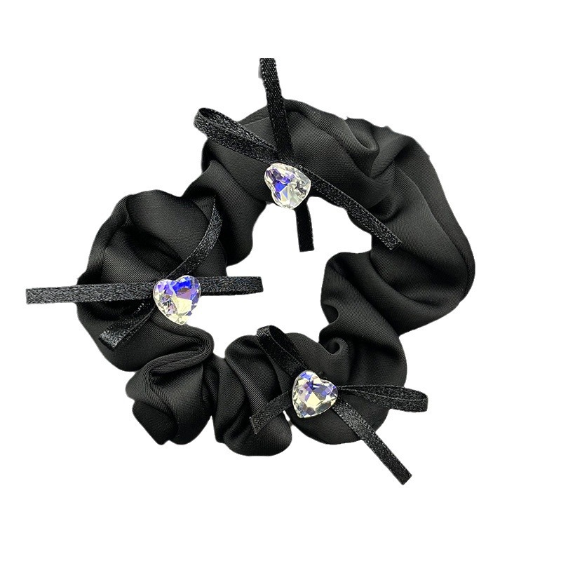 黑色亮钻蝴蝶结大肠发圈网红精致简约发绳高马尾丸子头皮筋发饰