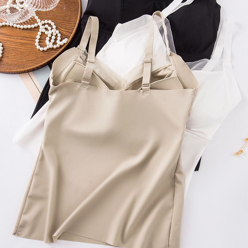 8809新款美背乳胶胸垫一体式背心防走光可调节肩带聚拢冰丝内衣夏