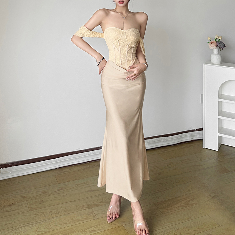 跨境欧美风新款女装优雅晚宴穿搭精致蕾丝肩腰紧身连衣裙