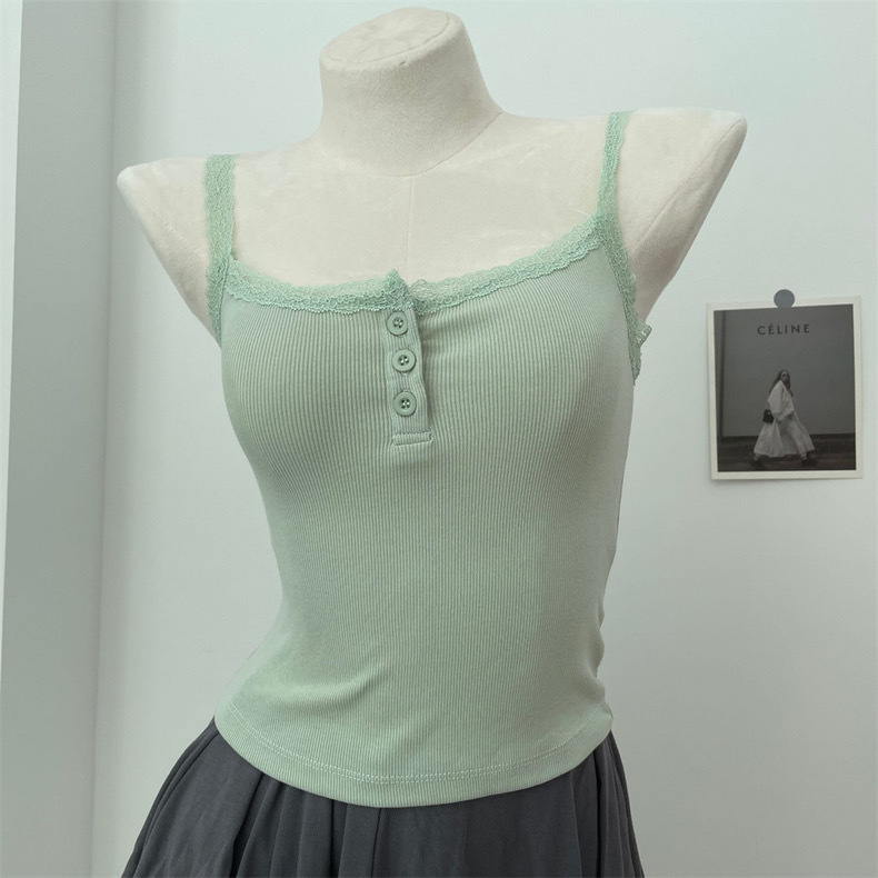 纯欲蕾丝花边吊带小背心女夏性感露背外穿上衣运动修身短款打底衫