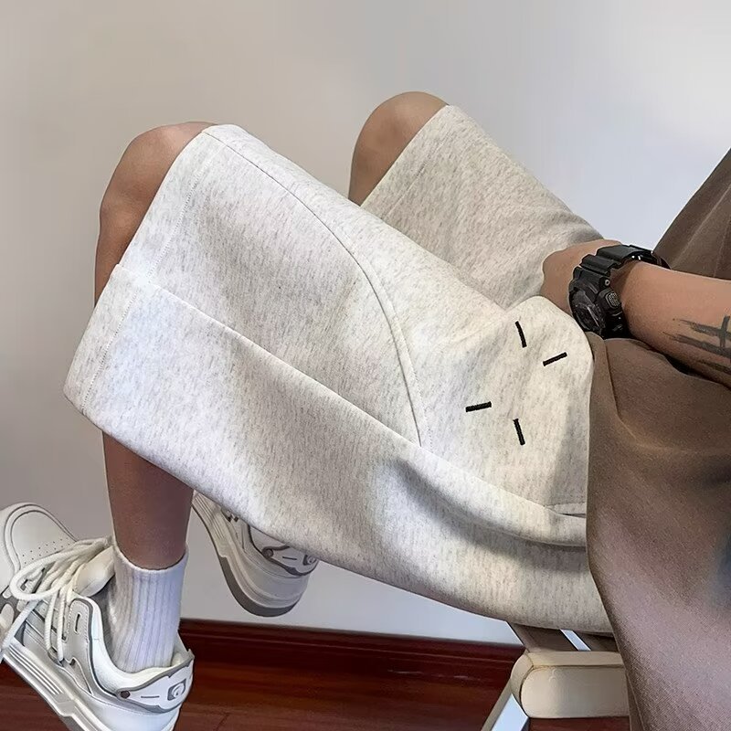 青少年重磅刺绣短裤男夏季宽松拼接运动中裤潮牌美式休闲五分裤子