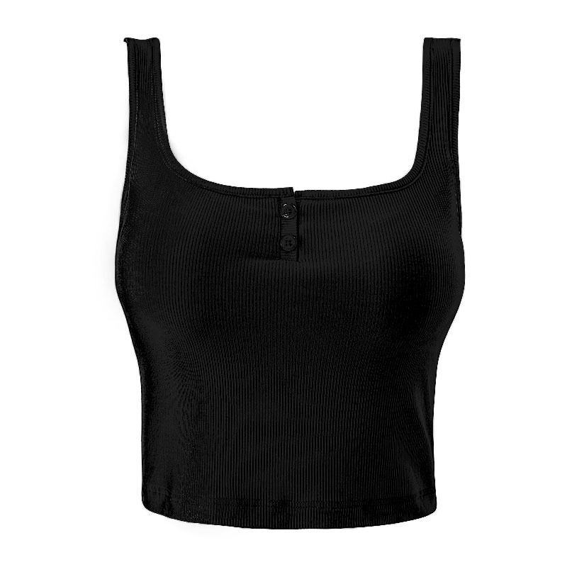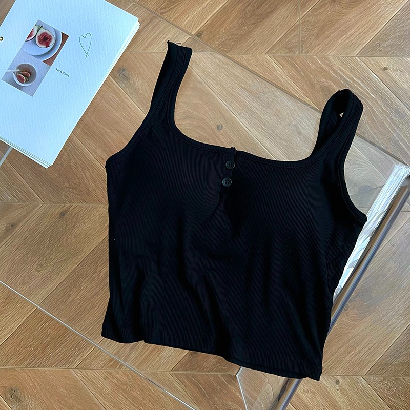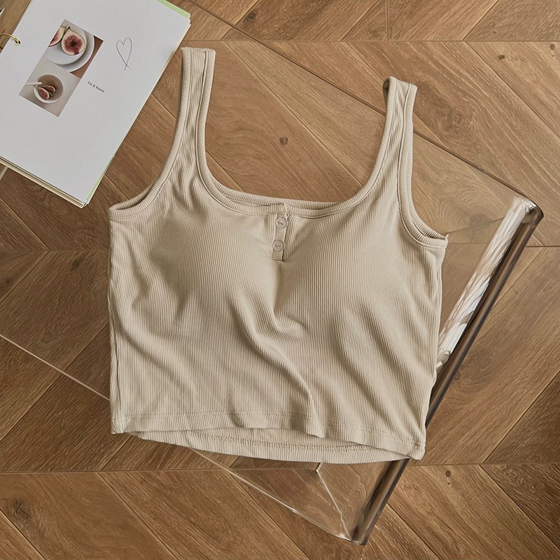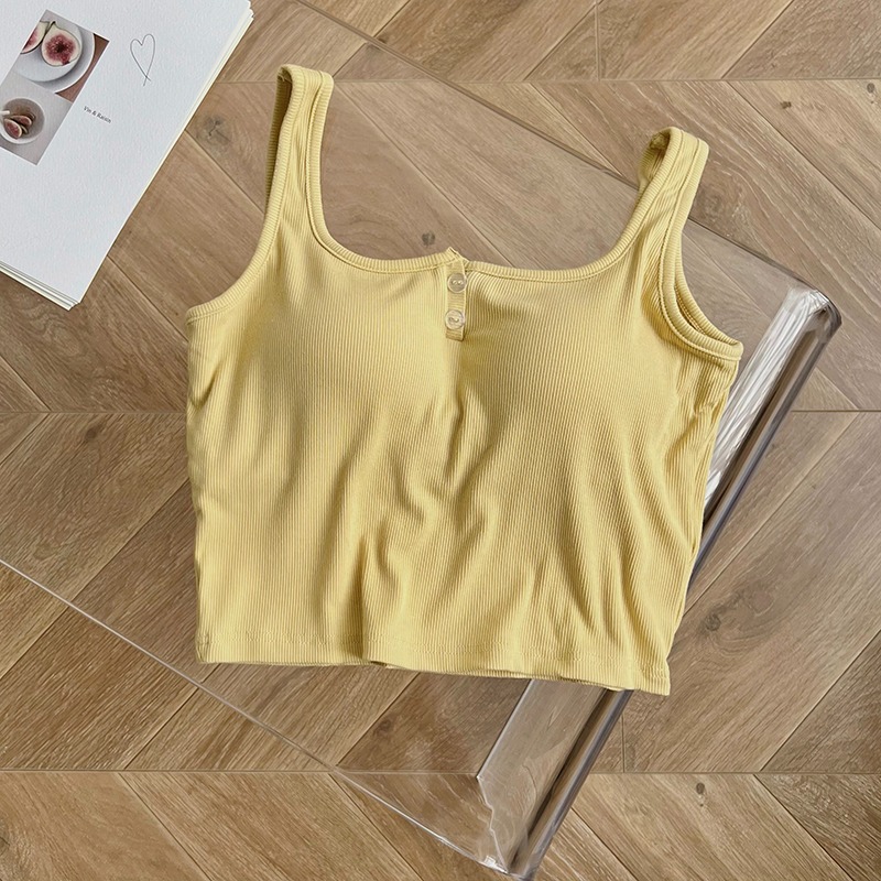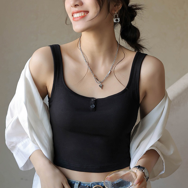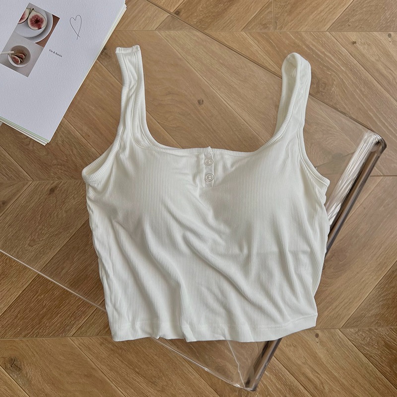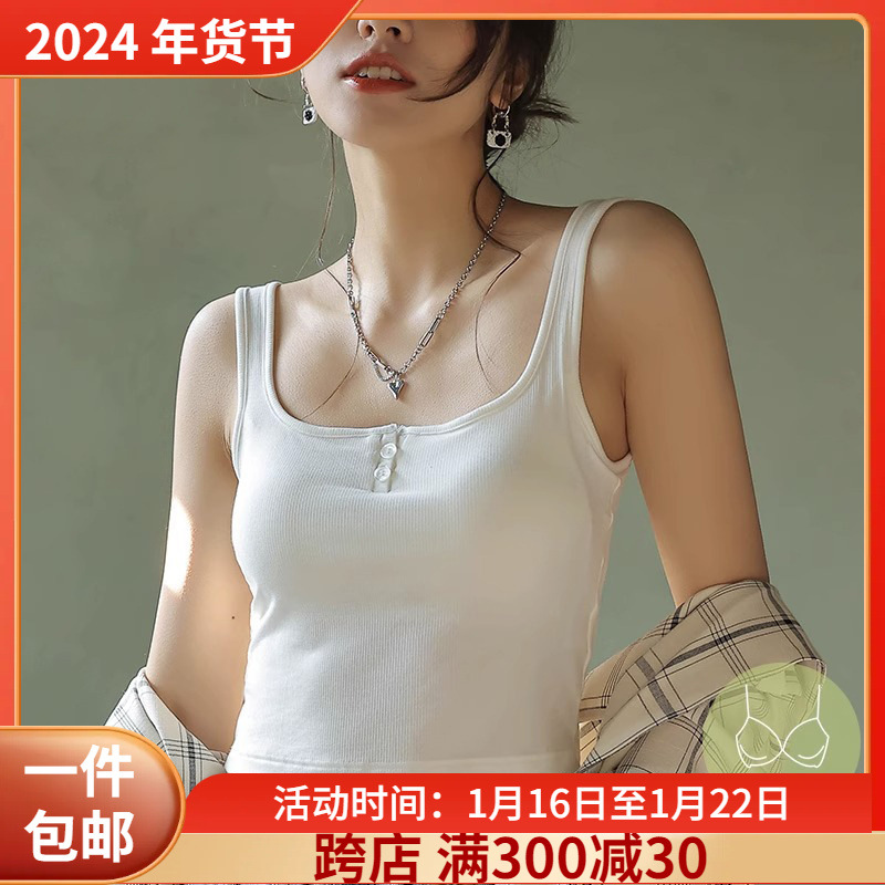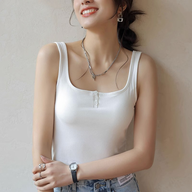 深圳致曲自带胸垫免穿文胸方领纽扣舒适背心螺纹打底内搭吊带衫