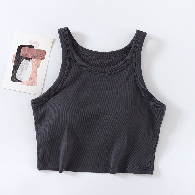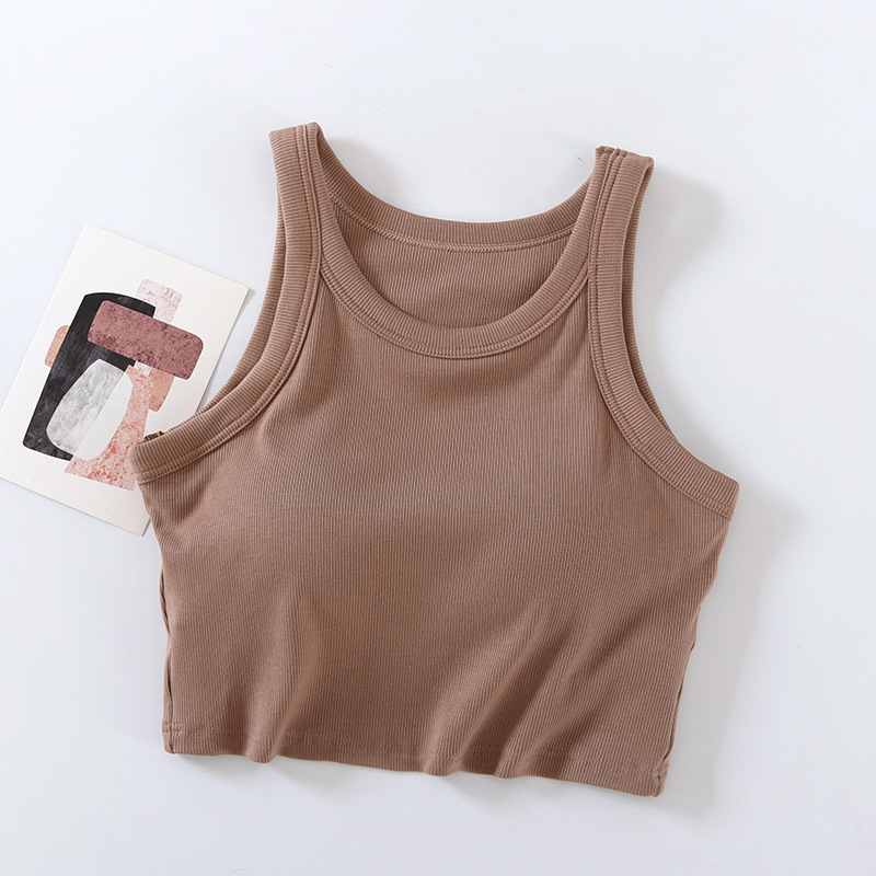 螺纹带胸垫露脐背心短款内搭文胸罩杯一体小吊带内衣女夏无袖打底