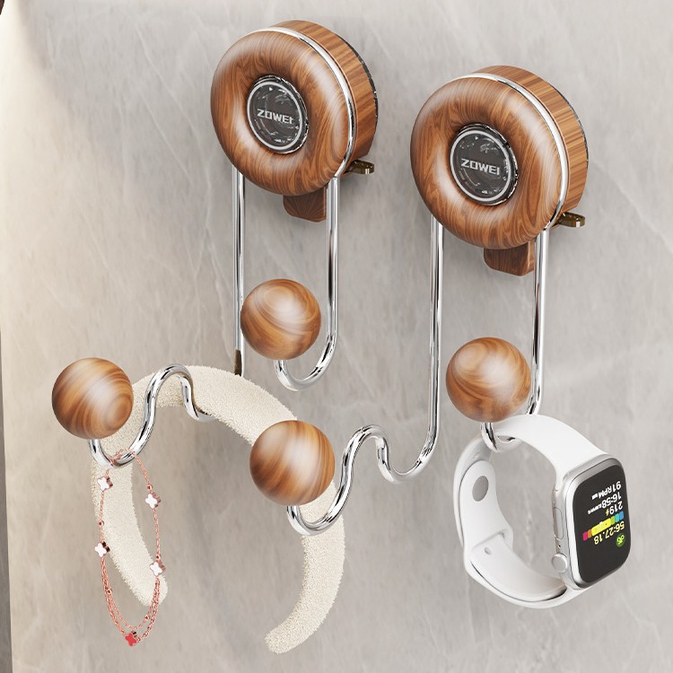 木纹吸盘挂钩免打孔壁挂木质门后挂衣钩卫生间浴室多功能强力粘钩