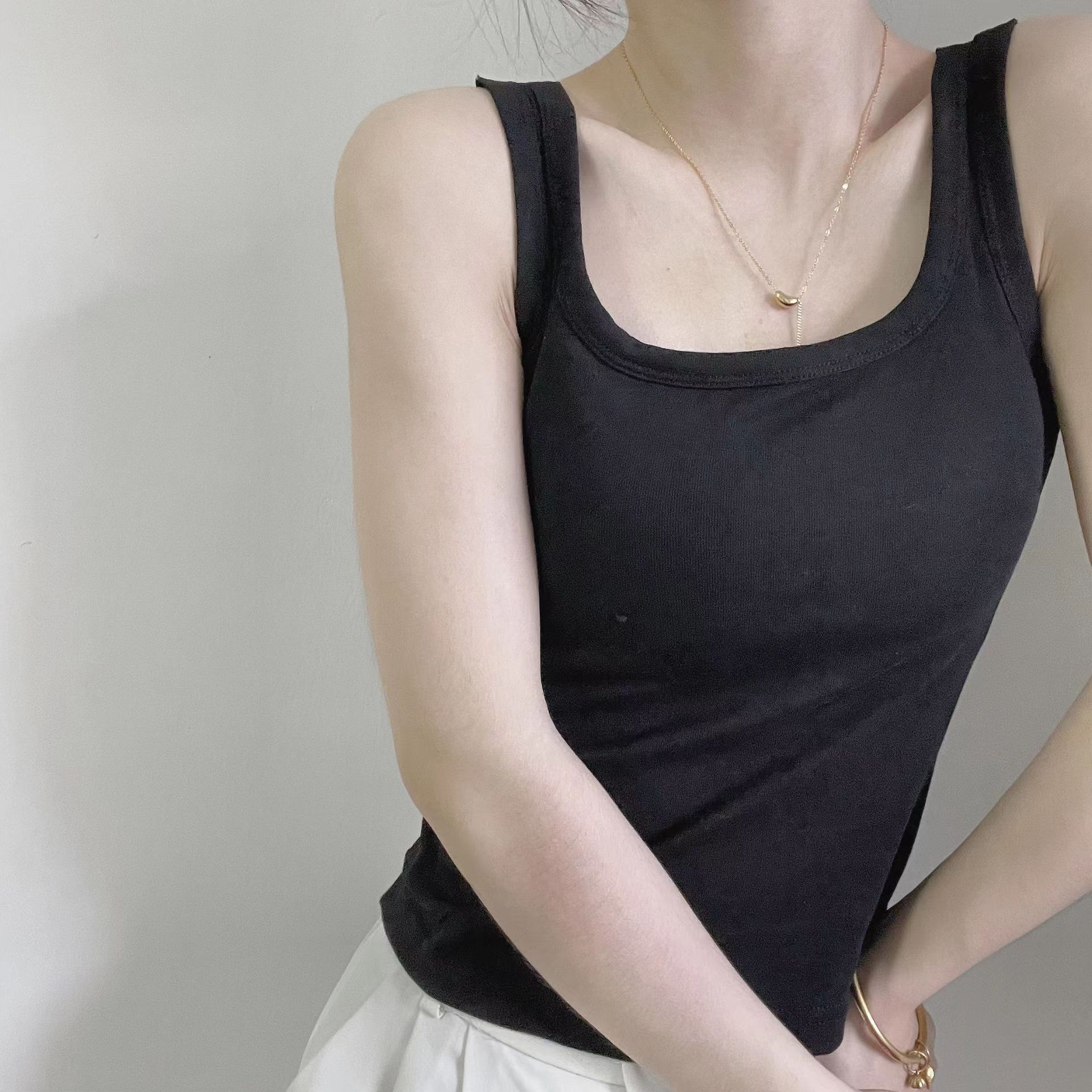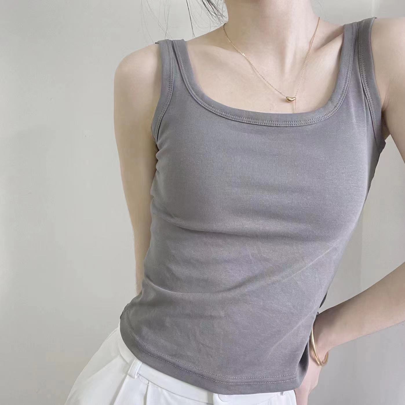 新款带胸垫螺纹纯棉内搭背心女 聚拢乳胶杯百搭圆领无袖打底内衣