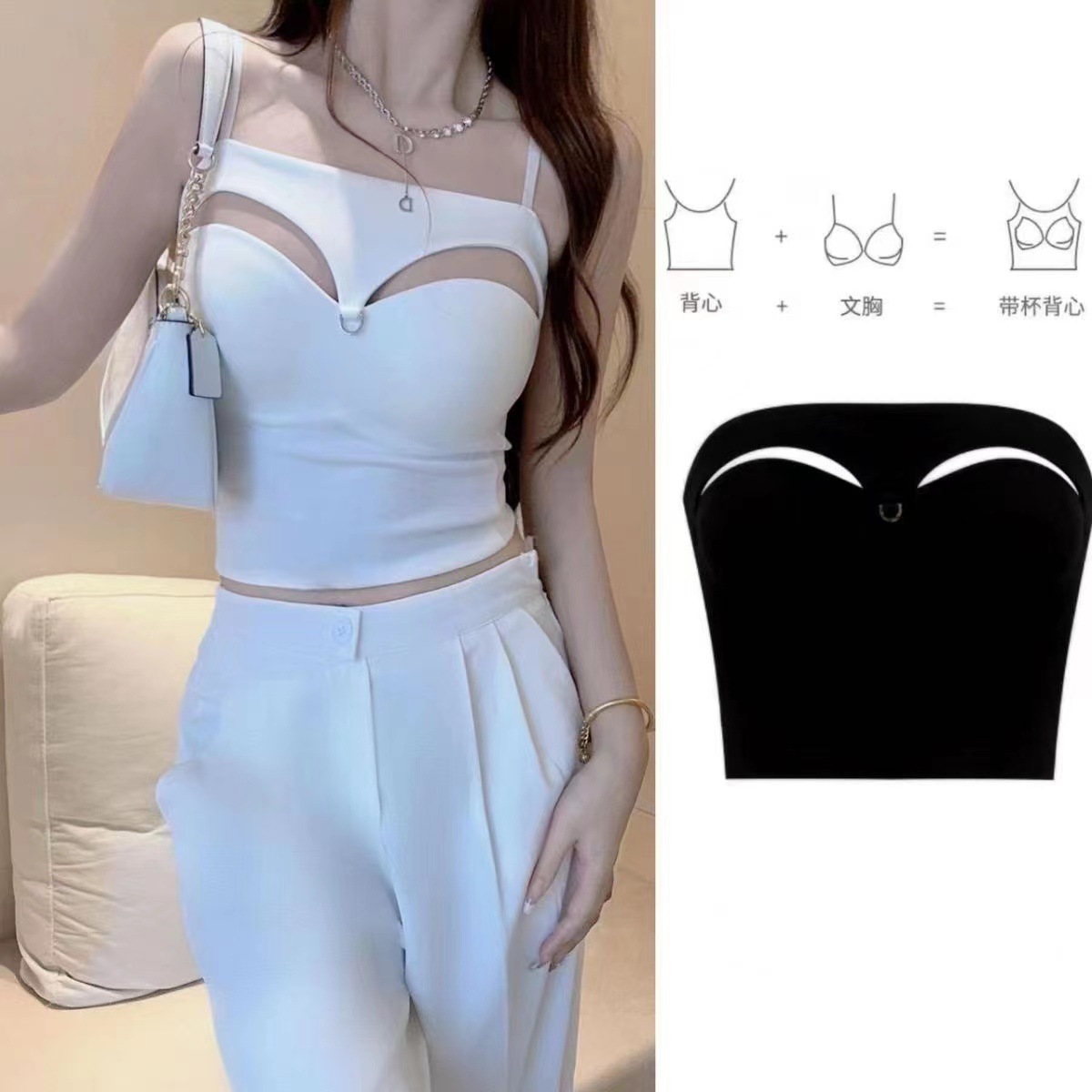 辣妹镂空抹胸一体杯吊带背心设计感修身上衣性感内搭外穿美背裹胸