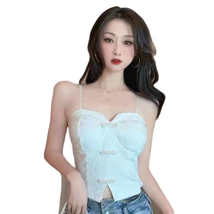 复古中式旗袍吊带背心女夏季外穿内搭辣妹纯欲风性感短款白色上衣