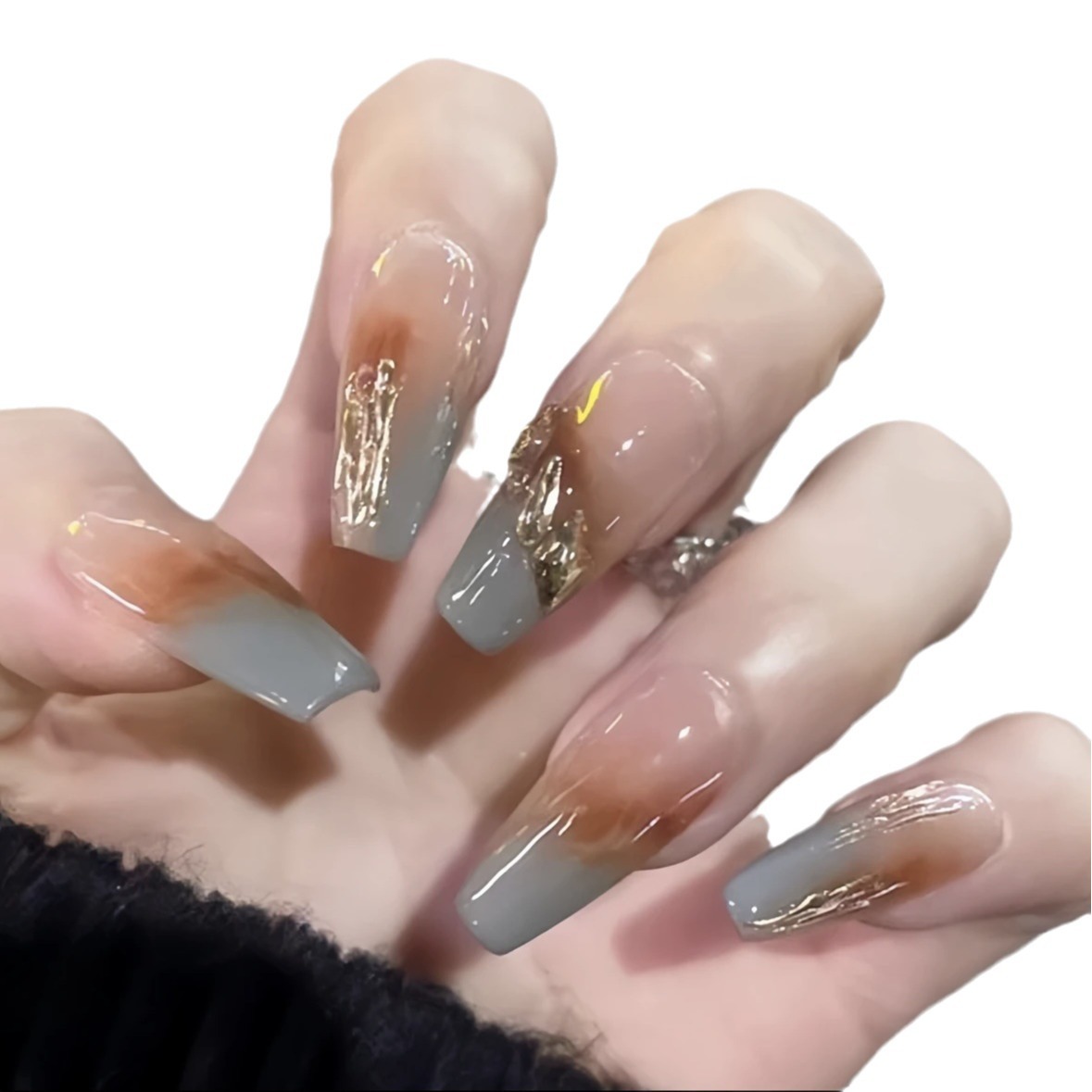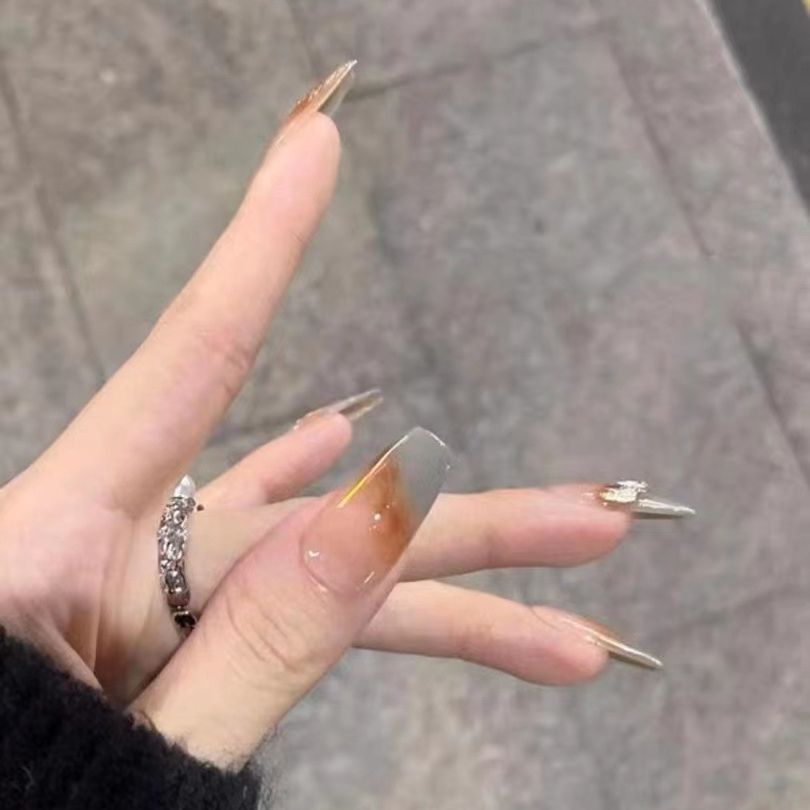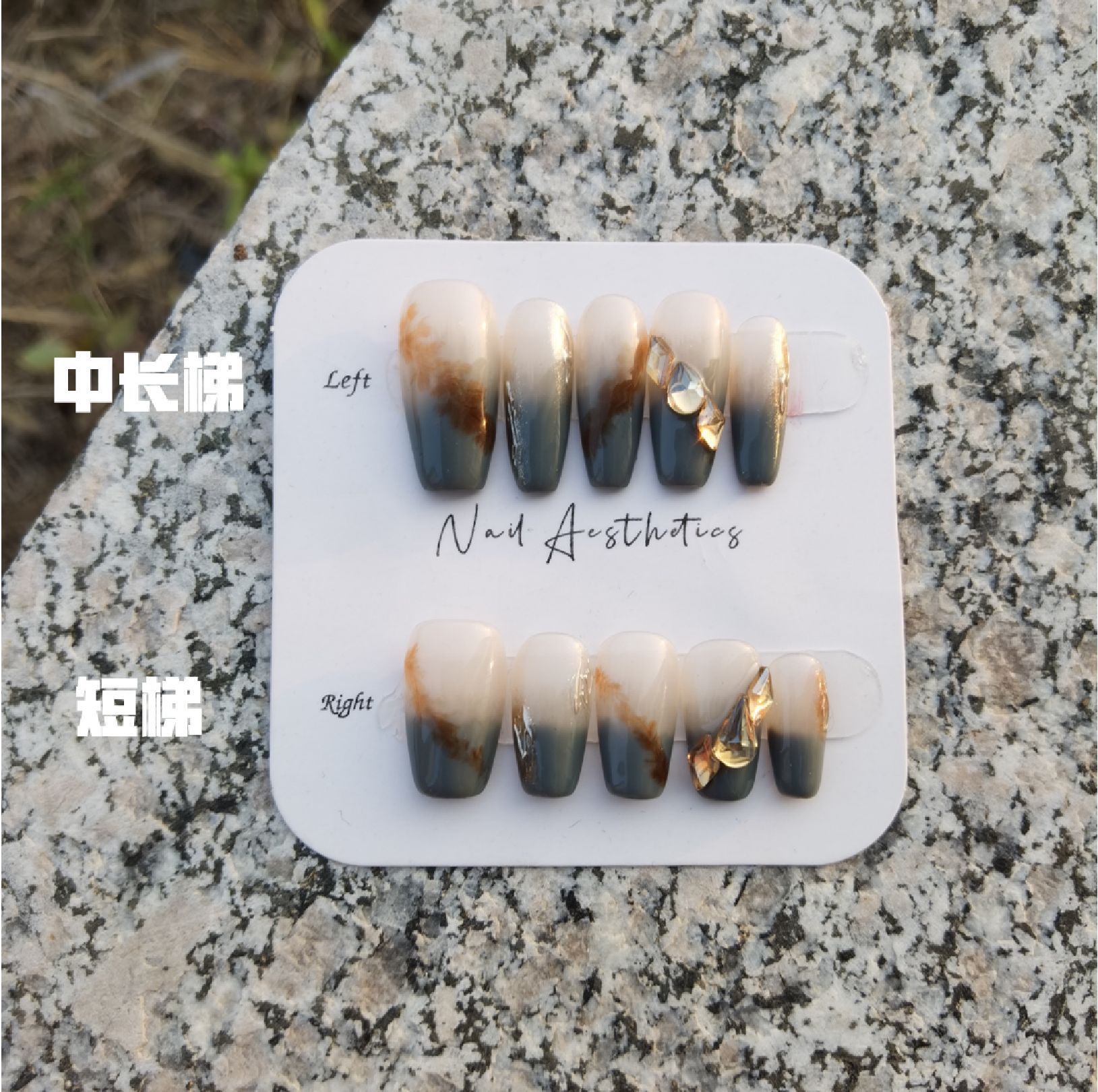尼罗河手工穿戴甲美甲甲片涩味琥珀鎏金迷雾森林长款短款