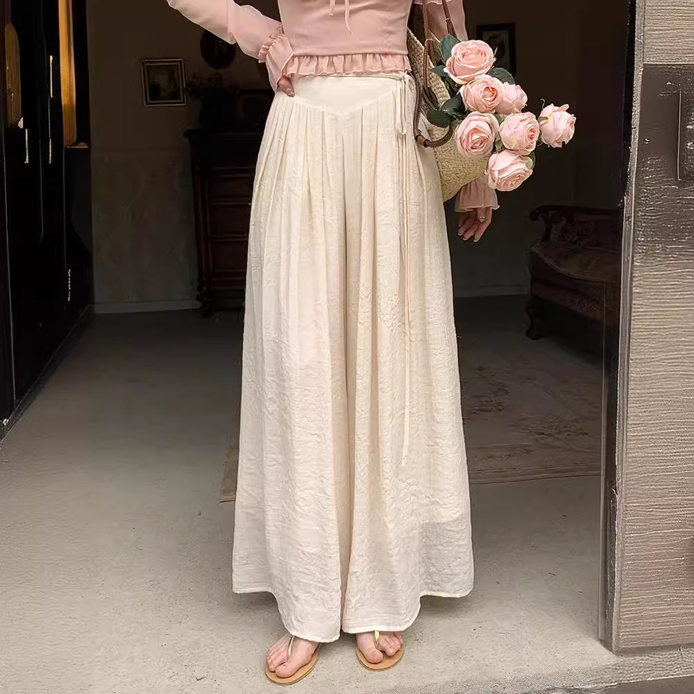 设计感时尚百搭纯色系带高腰显瘦百褶裤垂感阔腿裤休闲裤甜美