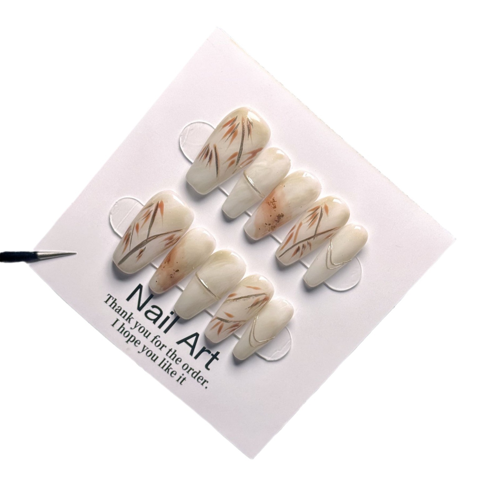 【金丝秋叶竹】手工穿戴甲片美甲指甲贴片国风竹子爆款