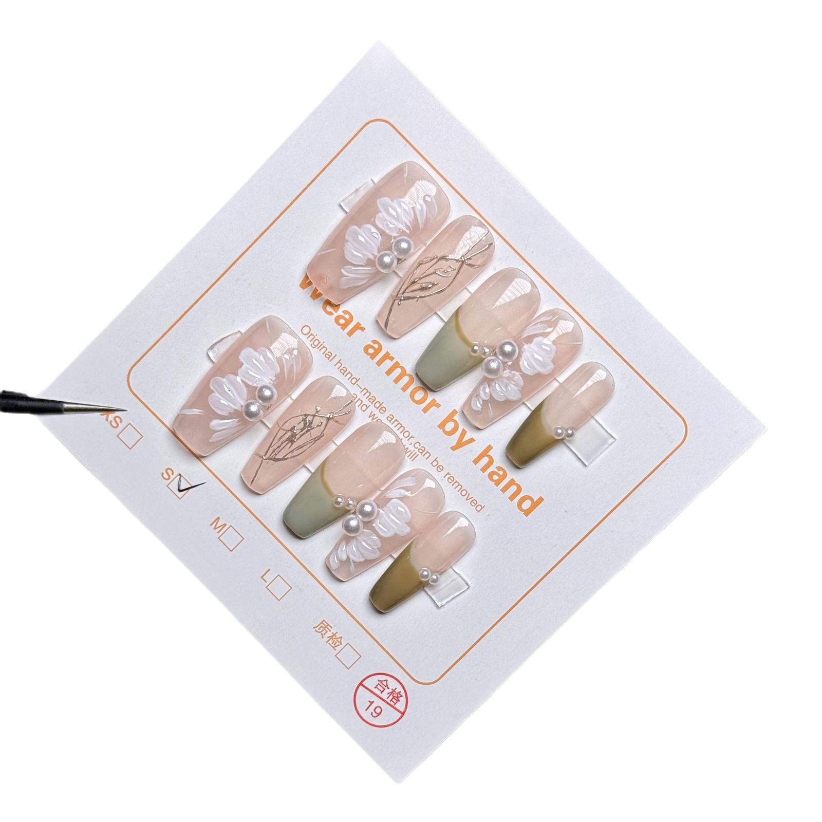纯手工穿戴甲片美甲指甲贴片花瓣法式珍珠中长款