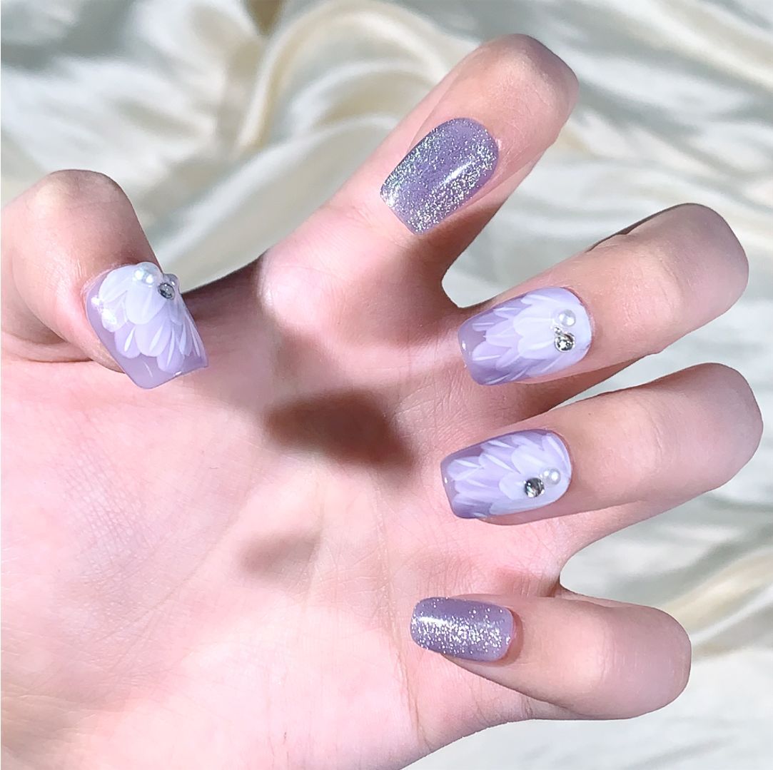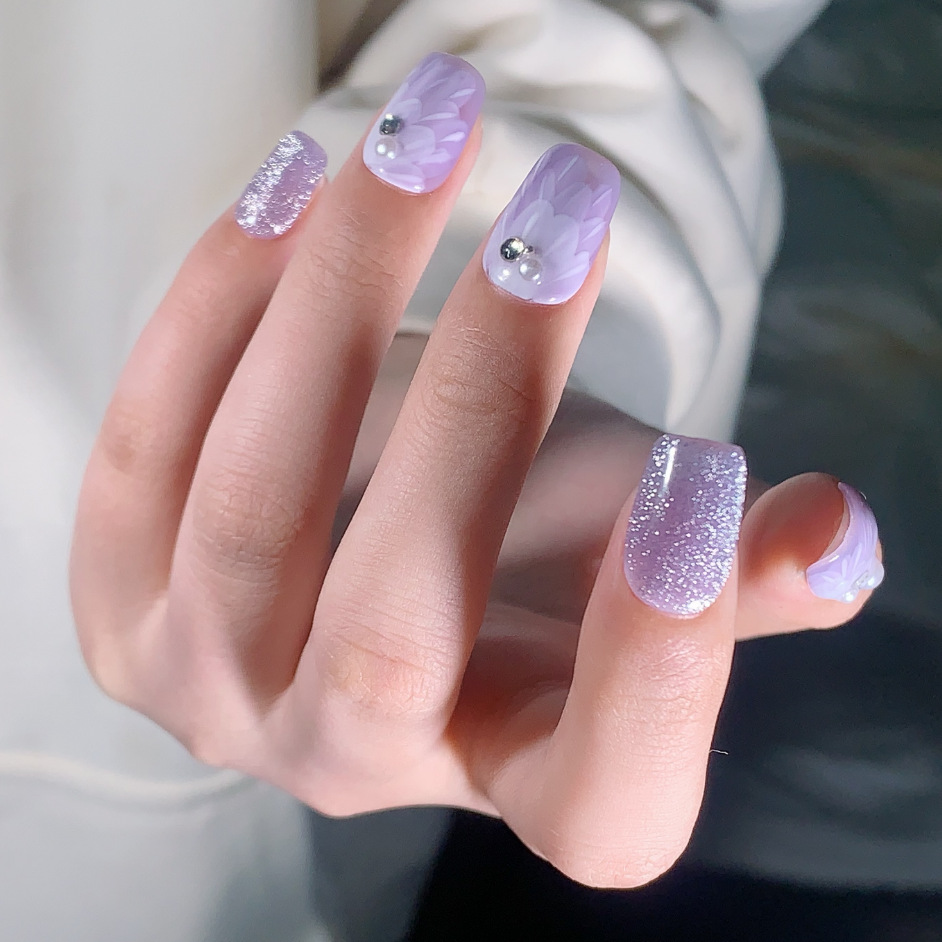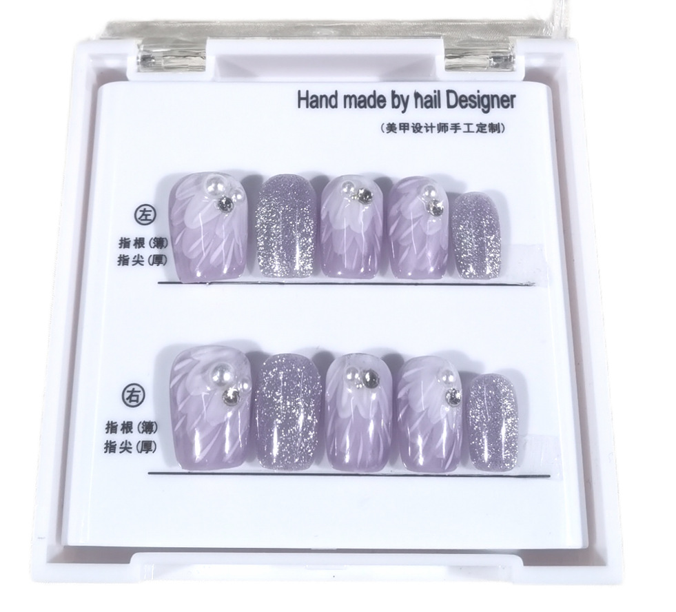 纯手工穿戴甲片美甲指甲贴片紫色羽毛层次感仙女气质