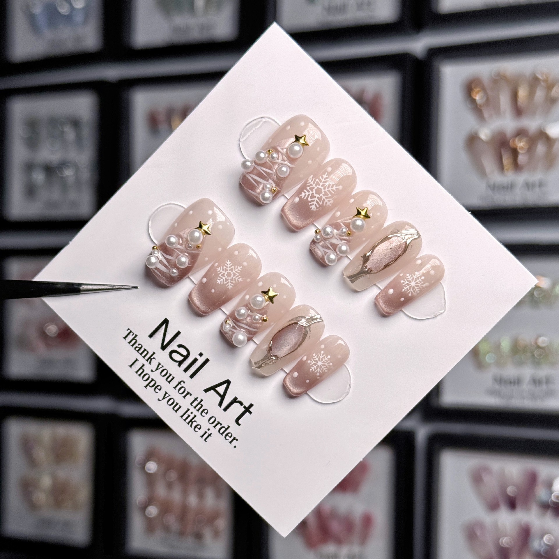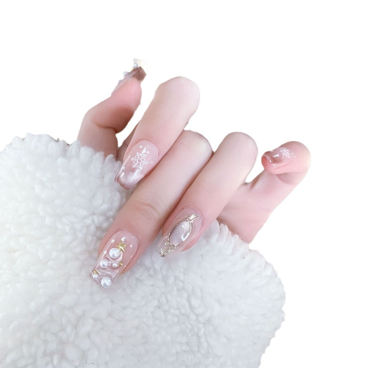 【初雪圣诞】手工穿戴甲美甲甲片星雪花猫眼显白圣诞节短款