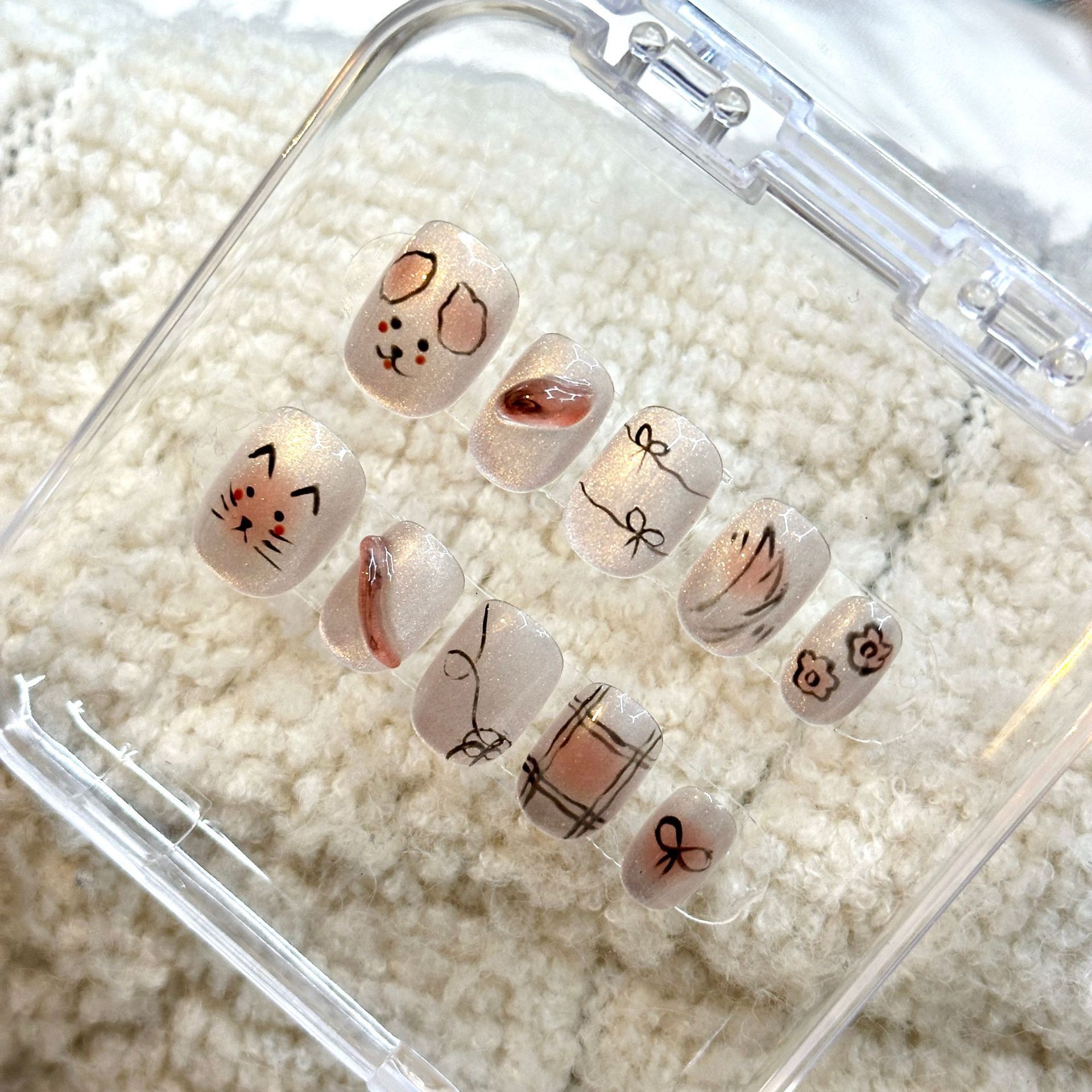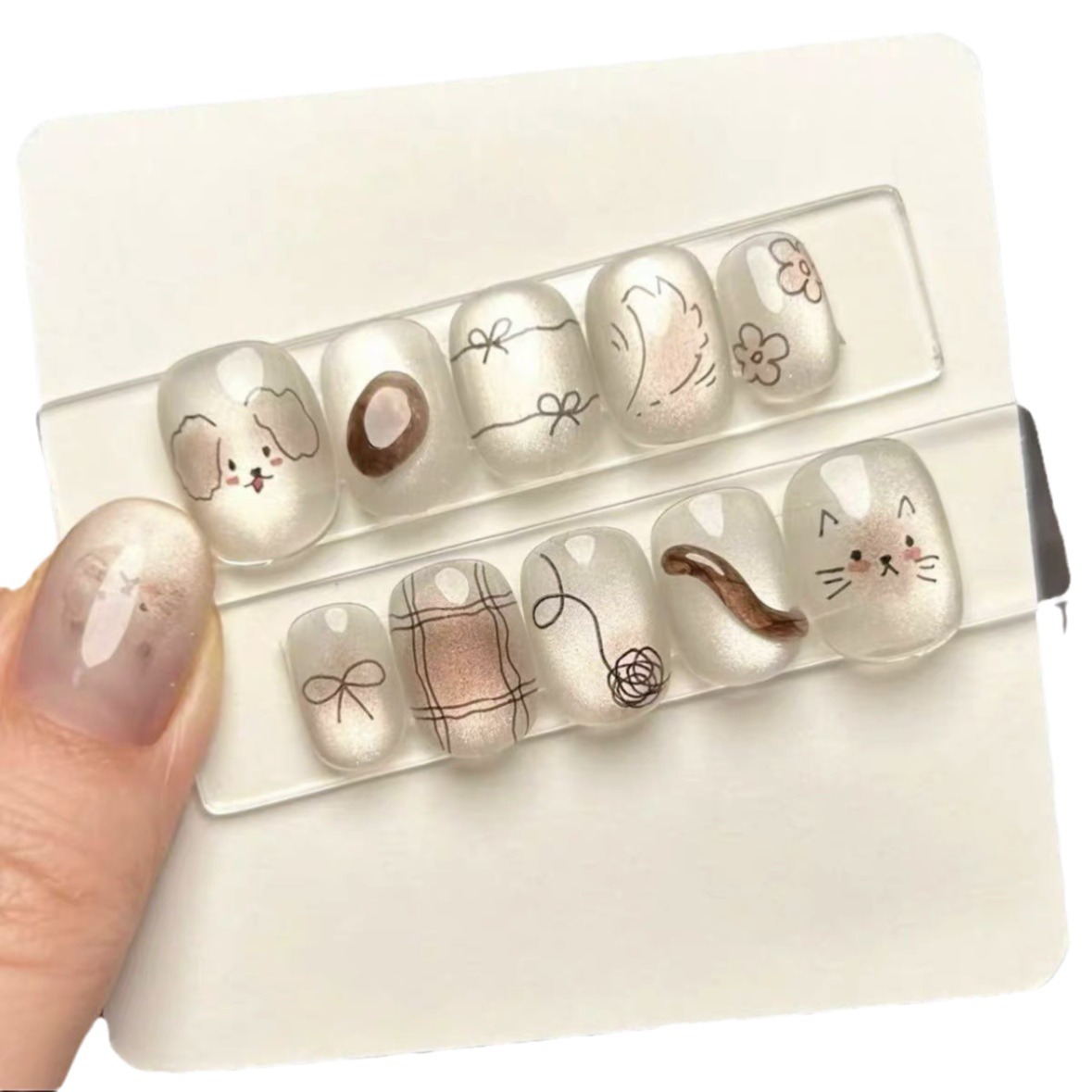 【追光猫】手工穿戴甲小狗小猫手绘ins风陶瓷白猫眼可爱美甲甲片