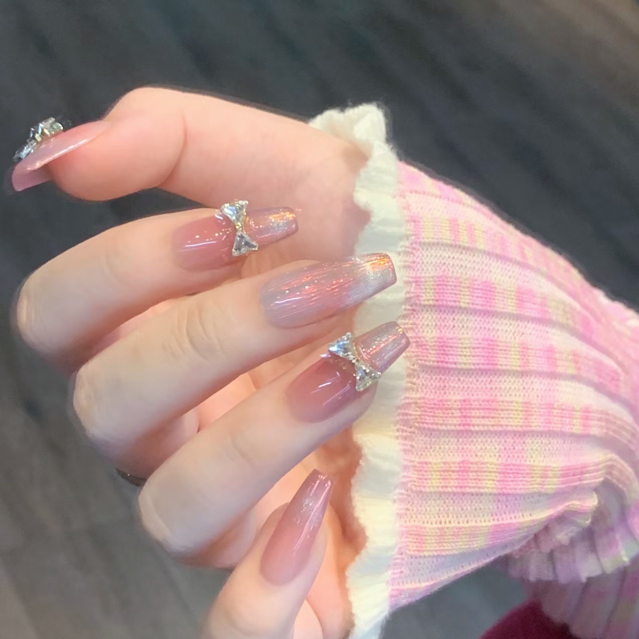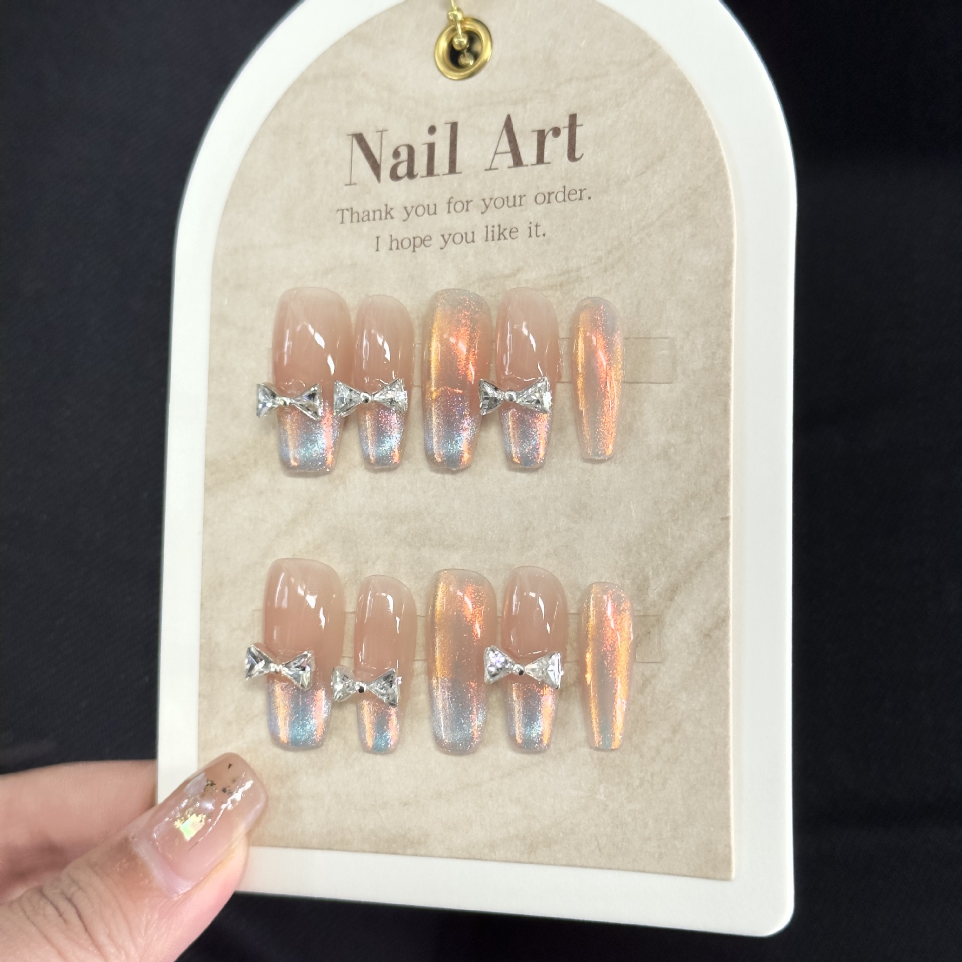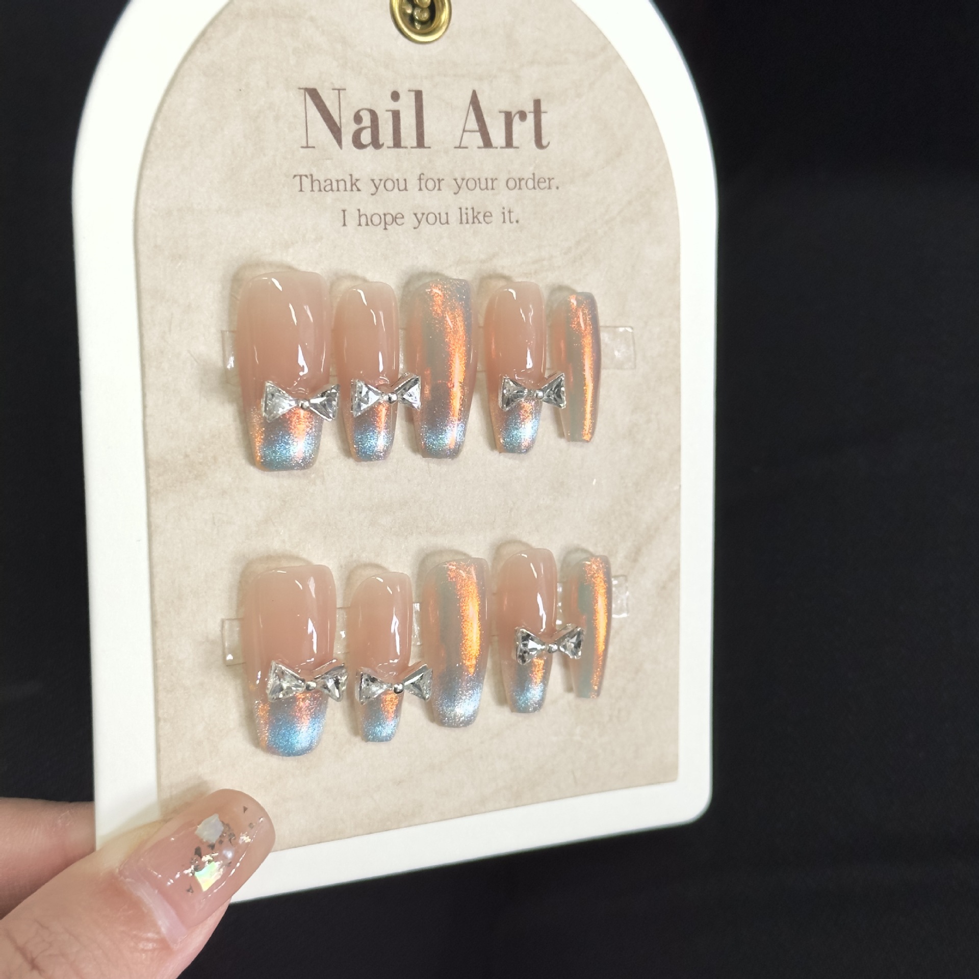 『扶摇』腮红渐变猫眼纯欲风蝴蝶结显白中长美甲贴片纯手工穿戴甲