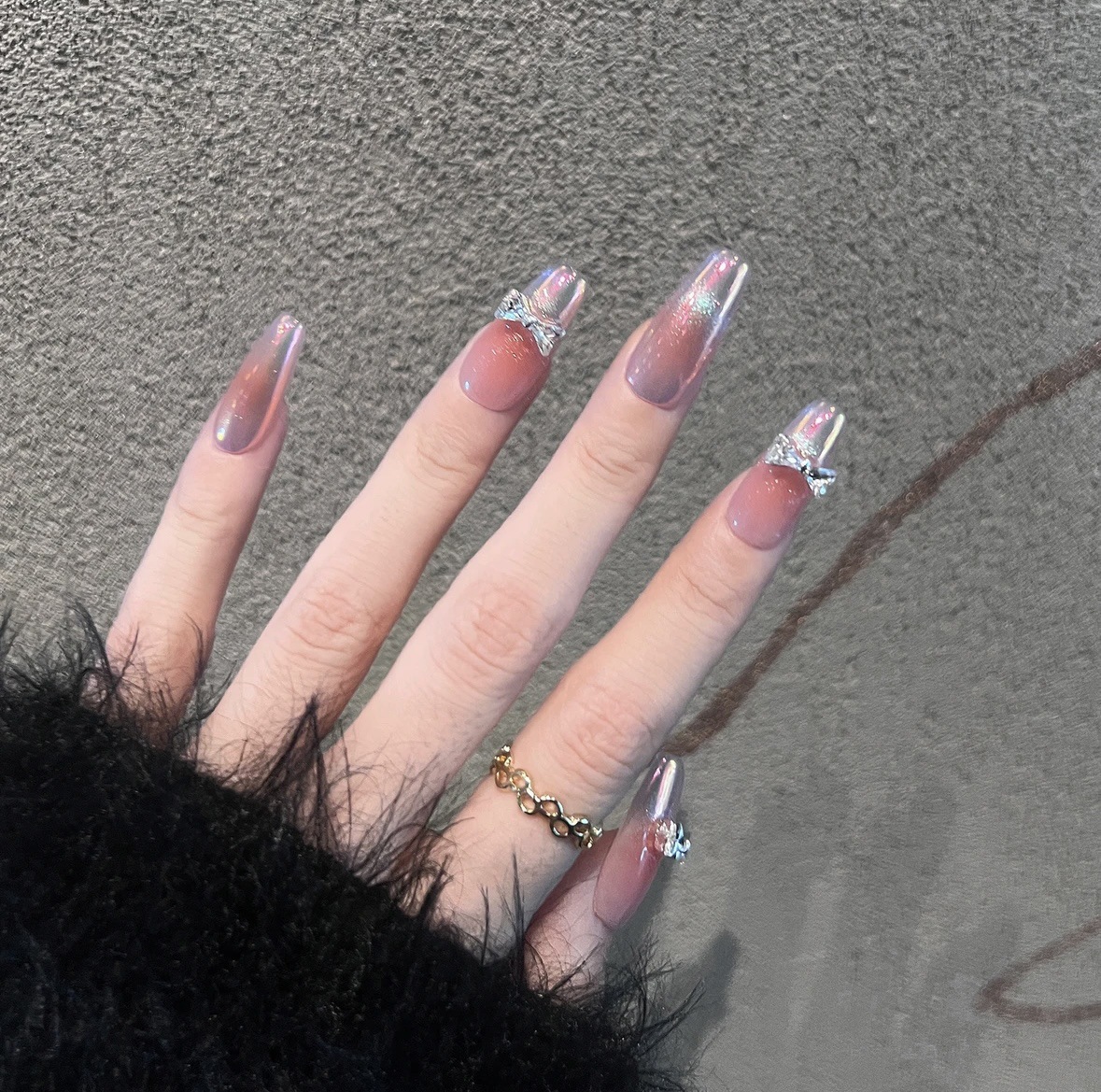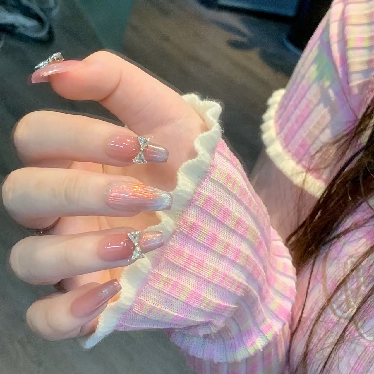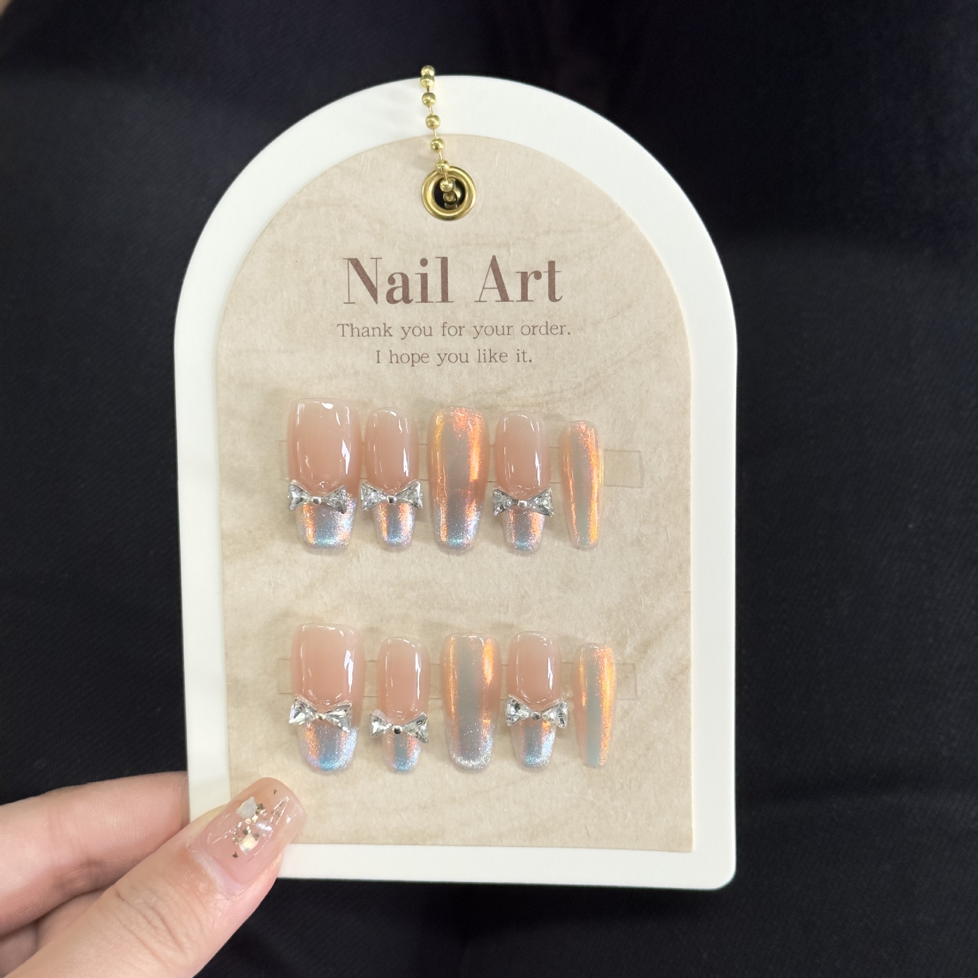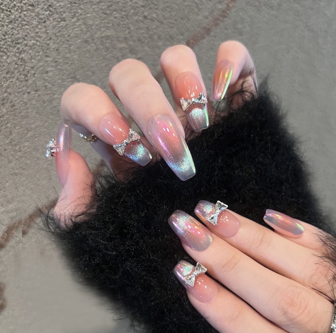 『扶摇』腮红渐变猫眼纯欲风蝴蝶结显白中长美甲贴片纯手工穿戴甲