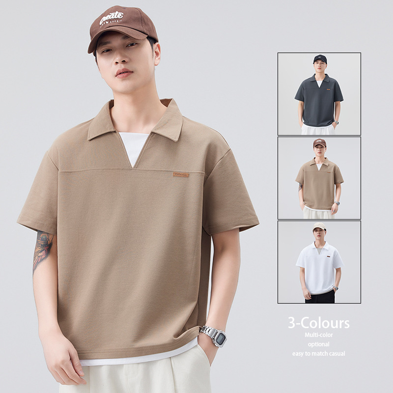 夏季新款翻领撞色POLO衫男士体恤宽松假两件短袖T恤休闲上衣拼色