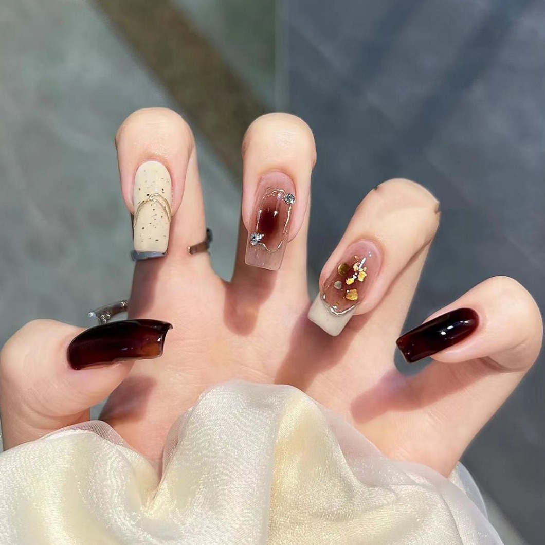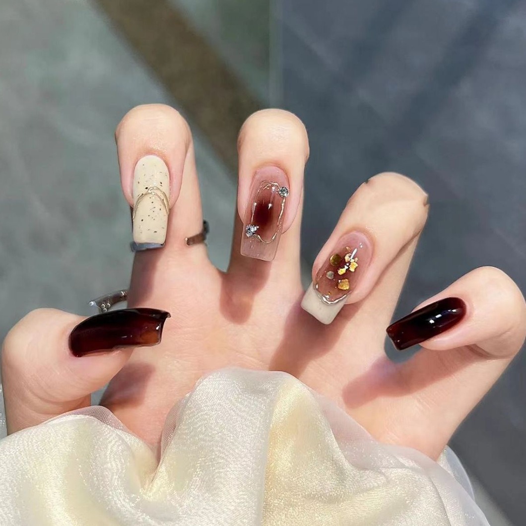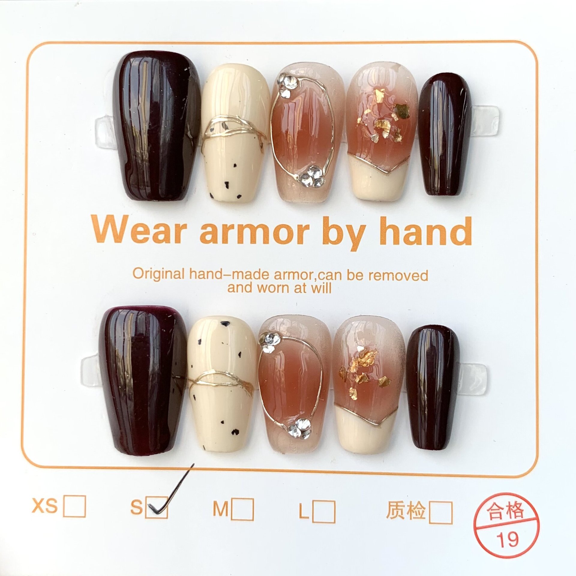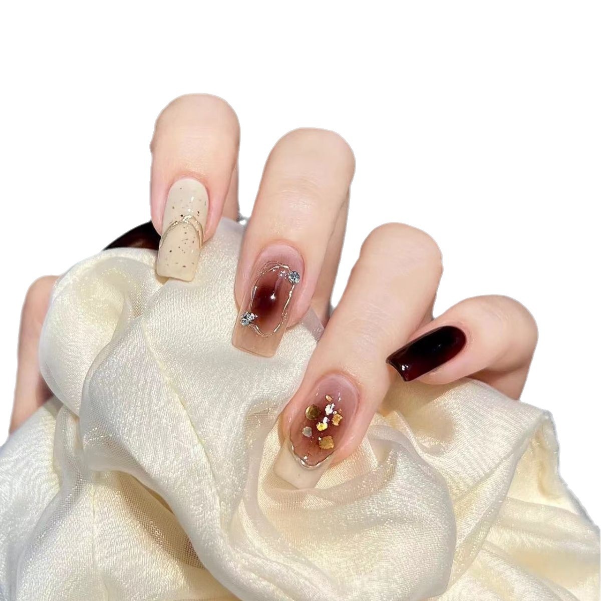 纯手工穿戴甲片美甲指甲贴片焦糖琥珀穿戴式短梯