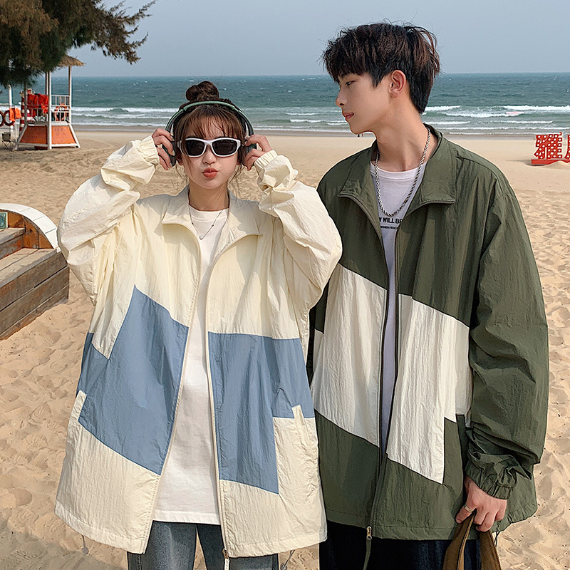 夏季薄款防晒衣男美式复古撞色 情侣装夹克潮牌宽松休闲防晒服外套