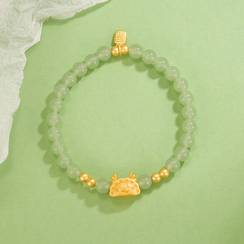 创意简约一龙蒸饺和田玉手链女款小众龙年本命年手串生日礼物手串
