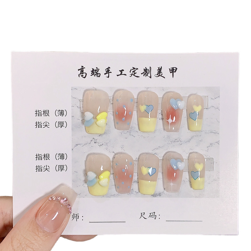 【纯手工实拍】手工穿戴甲马卡龙双色奶油爱心美甲贴片成品