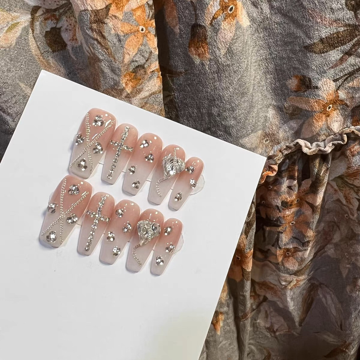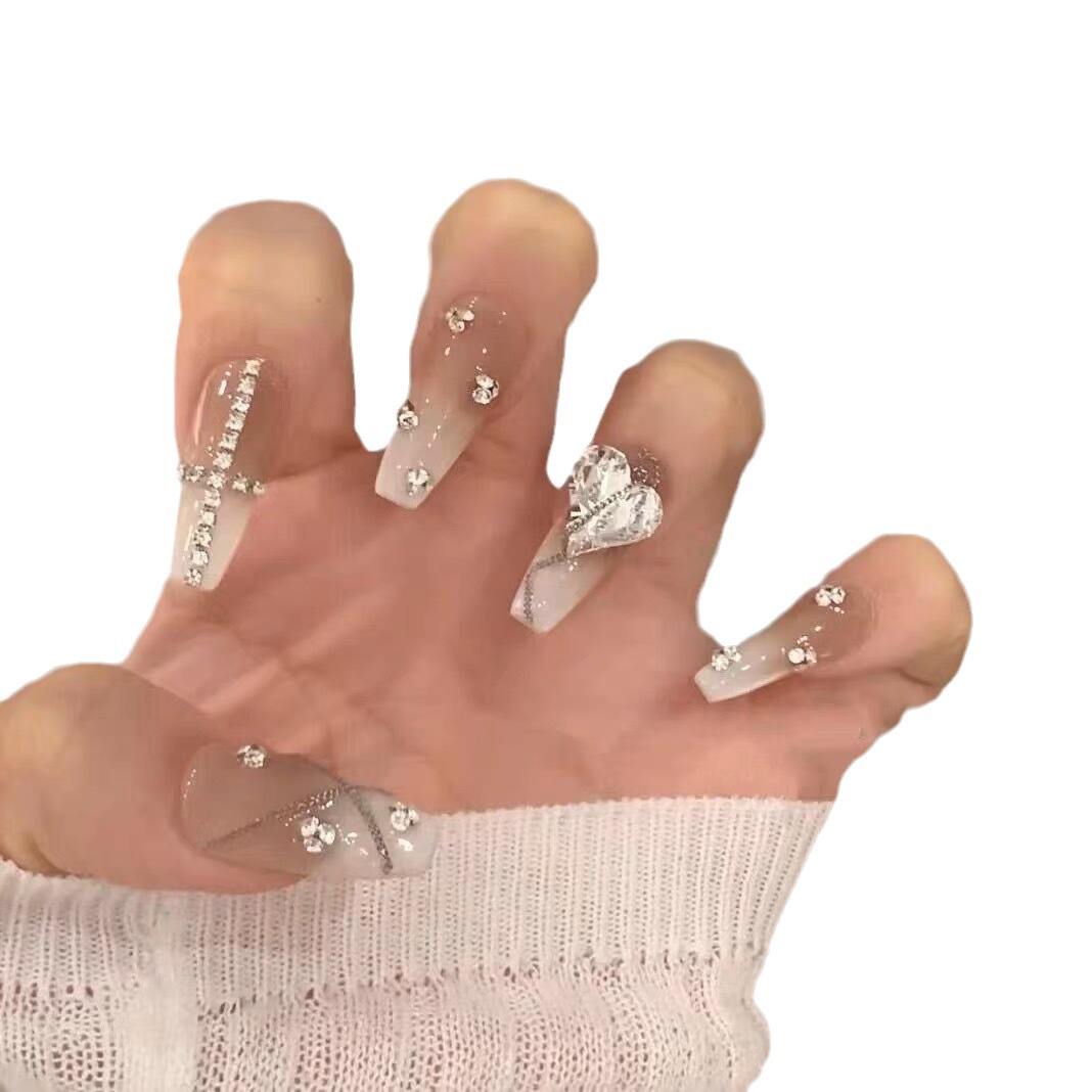 纯手工穿戴甲美甲指甲贴片爱心甜酷封心锁爱美甲钻甜酷