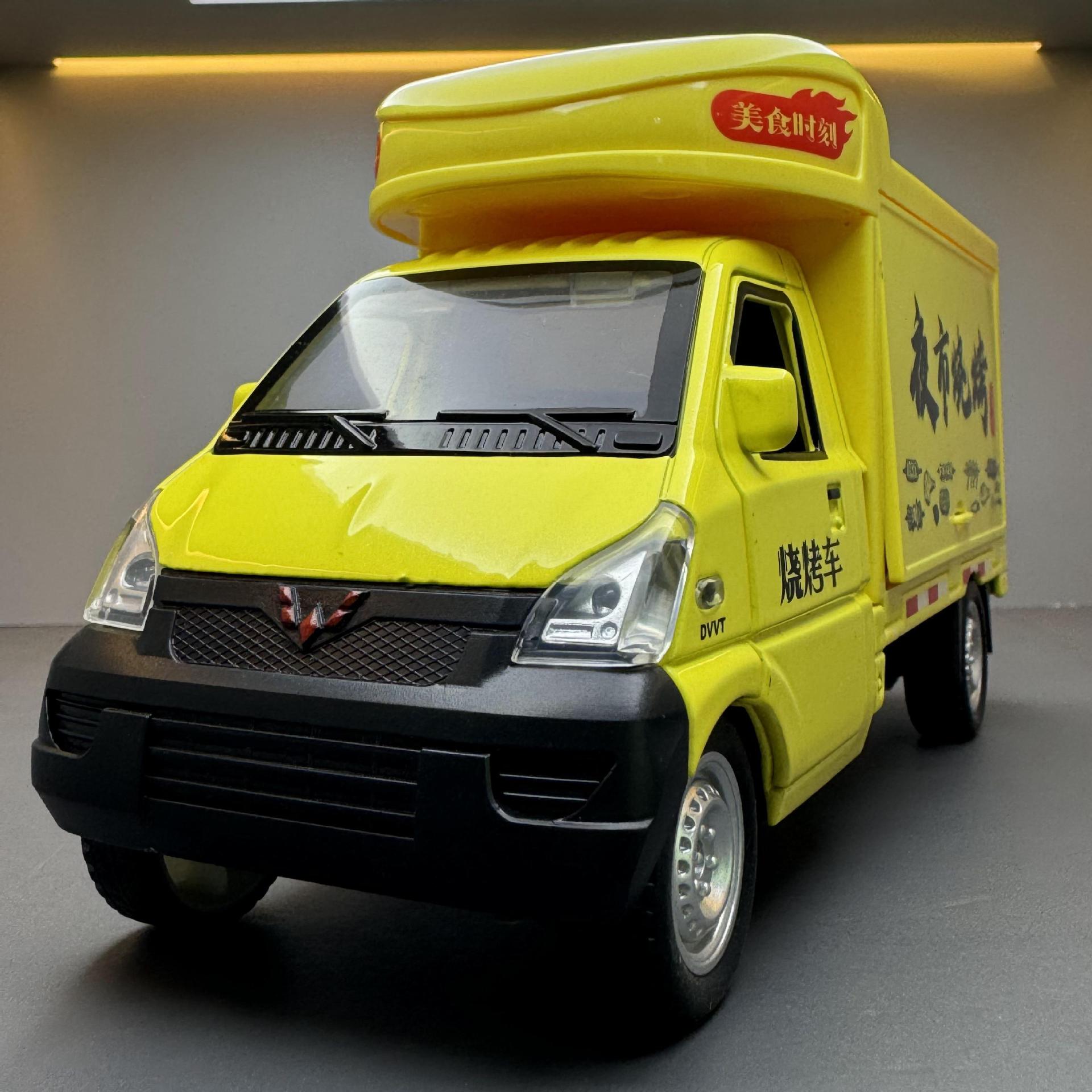 彩利信合金车模1:24五菱夜市摆摊烧烤车回力玩具汽车音乐模型摆件