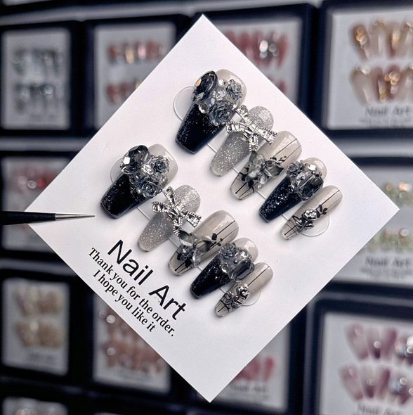 纯手工穿戴甲美甲甲片黑白复古风暗黑系爆款