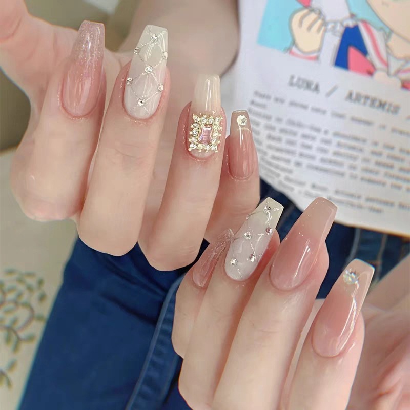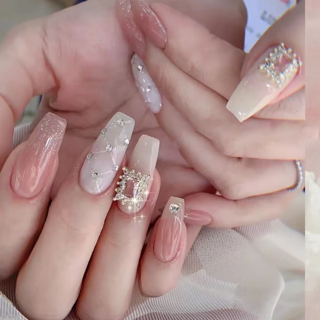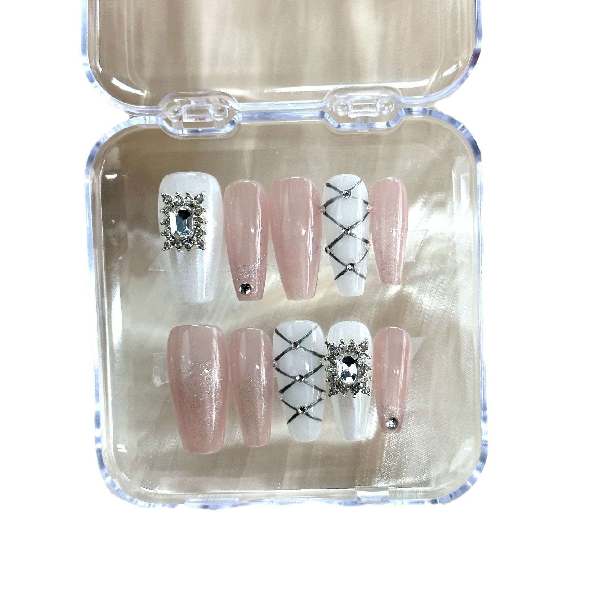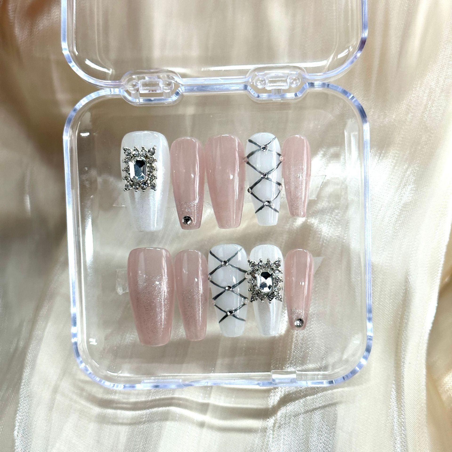 手工穿戴甲渐变猫眼法式芭蕾纯欲气质款宫廷中长爆闪甲片成品
