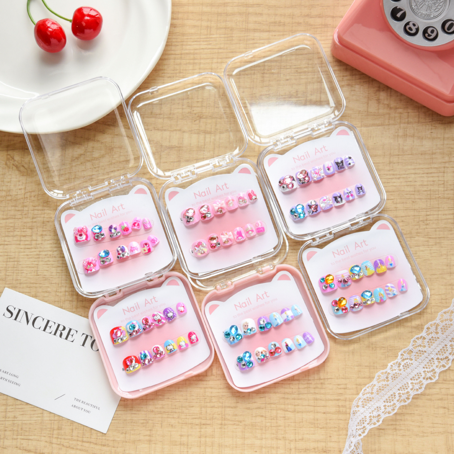 儿童美甲穿戴甲短款手绘小花小朋友带钻假指甲可拆美甲无毒