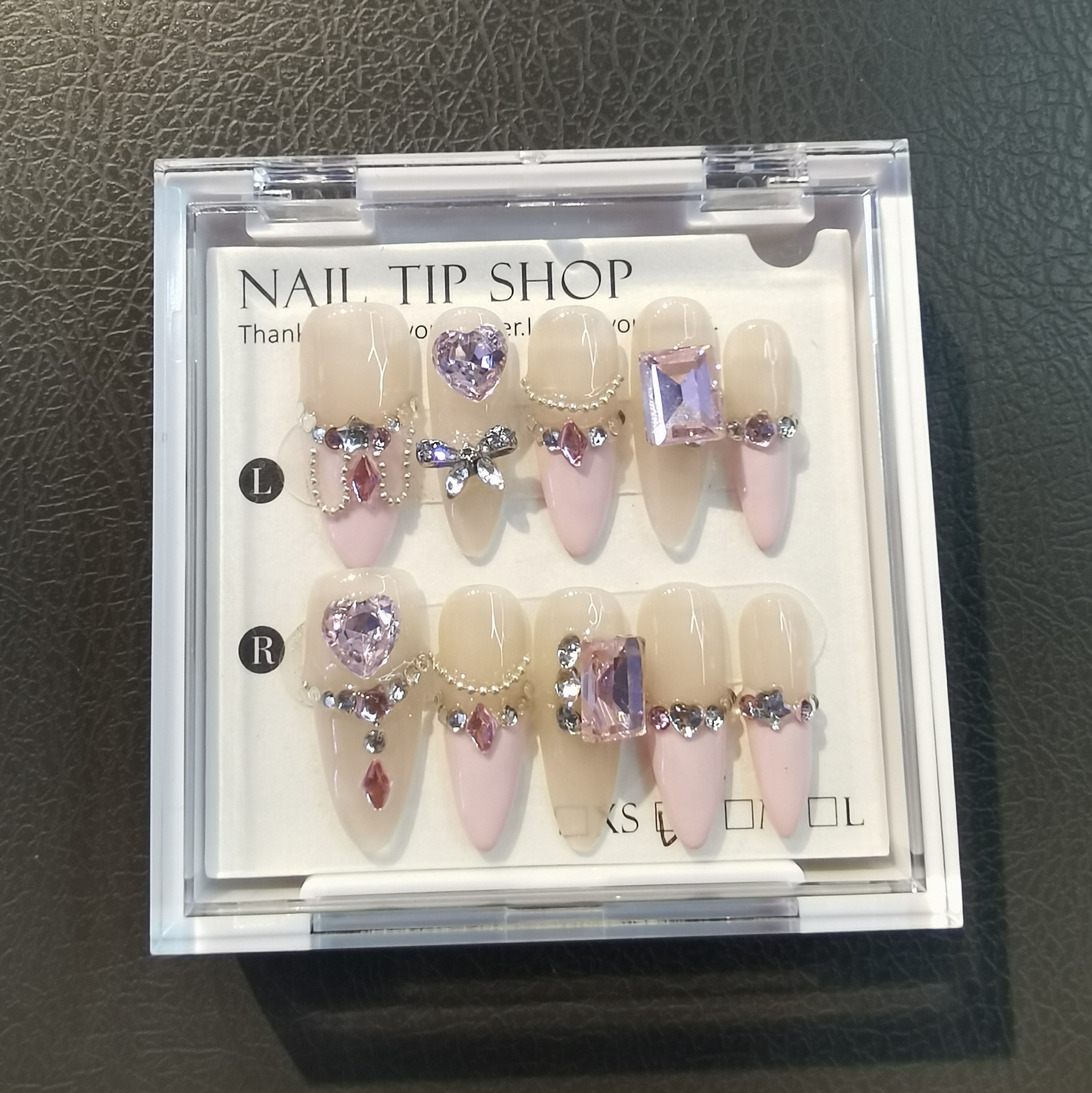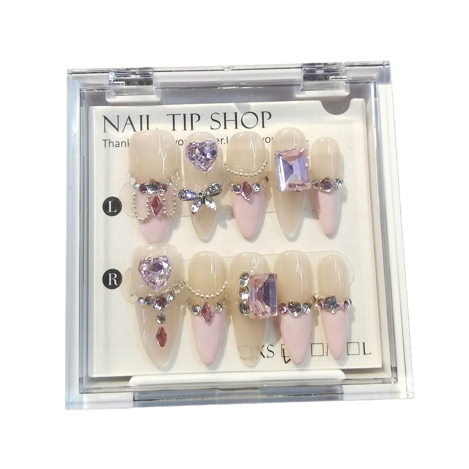 【天使嫁衣】重工手工穿戴甲片美甲甲片假指甲贴片爱心蝴蝶结法式