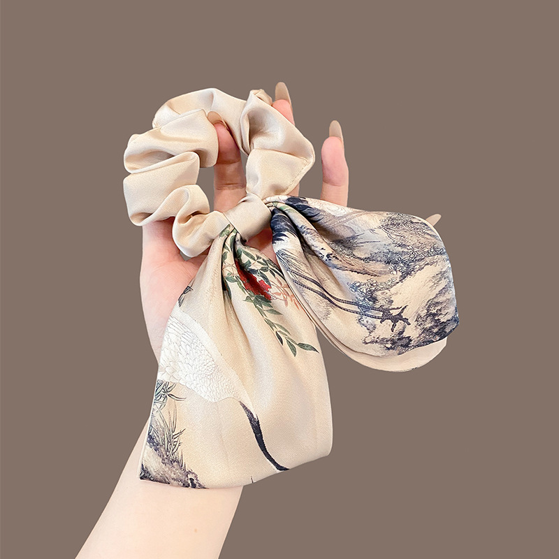 新中式水墨画彩绘蝴蝶结飘带大肠发圈女高级感后脑勺低扎马尾发绳