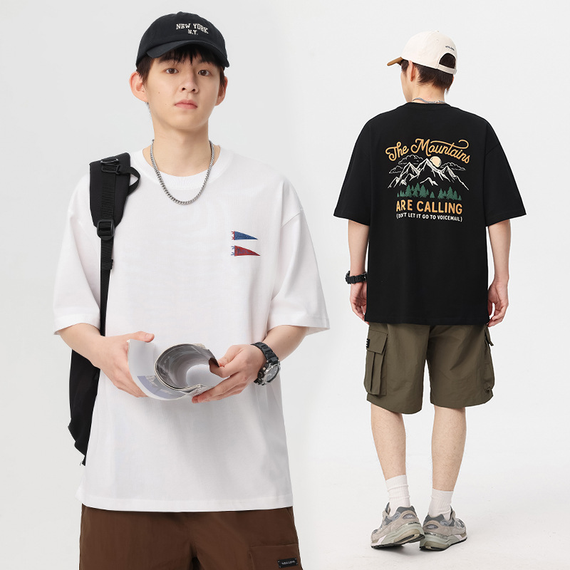 儒孟250G重磅短袖T恤男夏季圆领宽松背后印花打底衫潮流半袖体恤