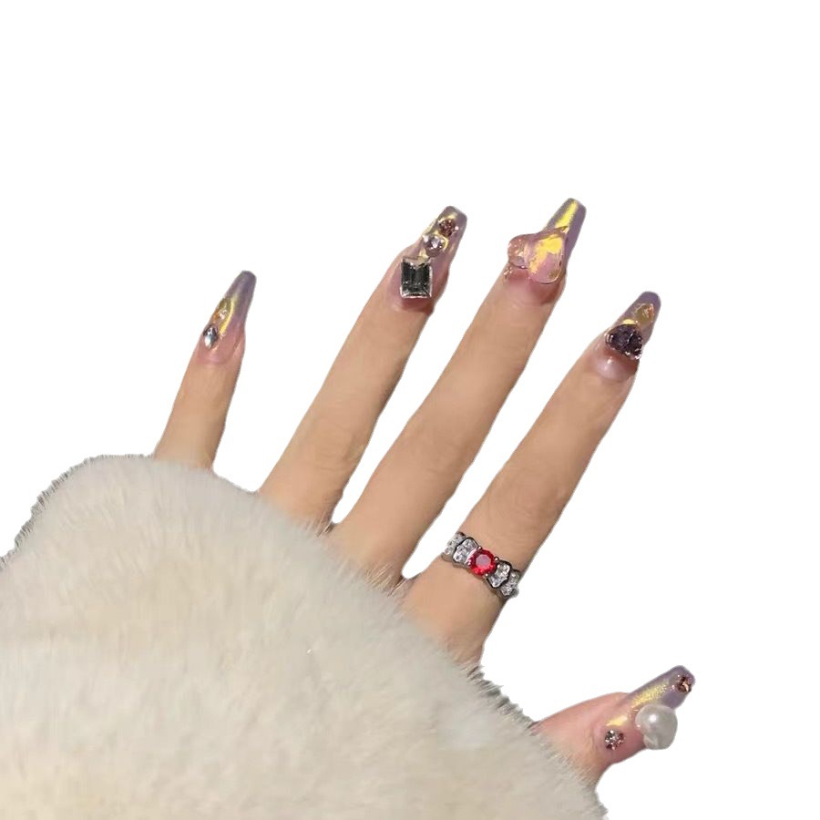 纯手工穿戴甲片美甲甲片指甲贴片高级粉爱心钻高级温柔甜酷