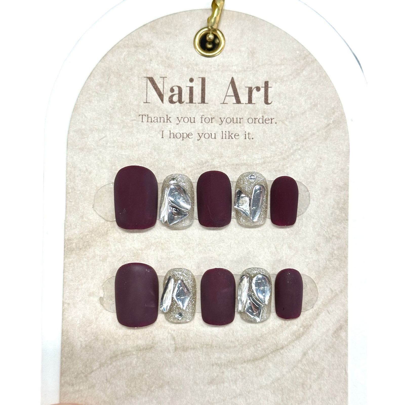 手工穿戴甲片磨砂酒红显白爆闪满钻纯色简约短款新年婚甲网红美甲