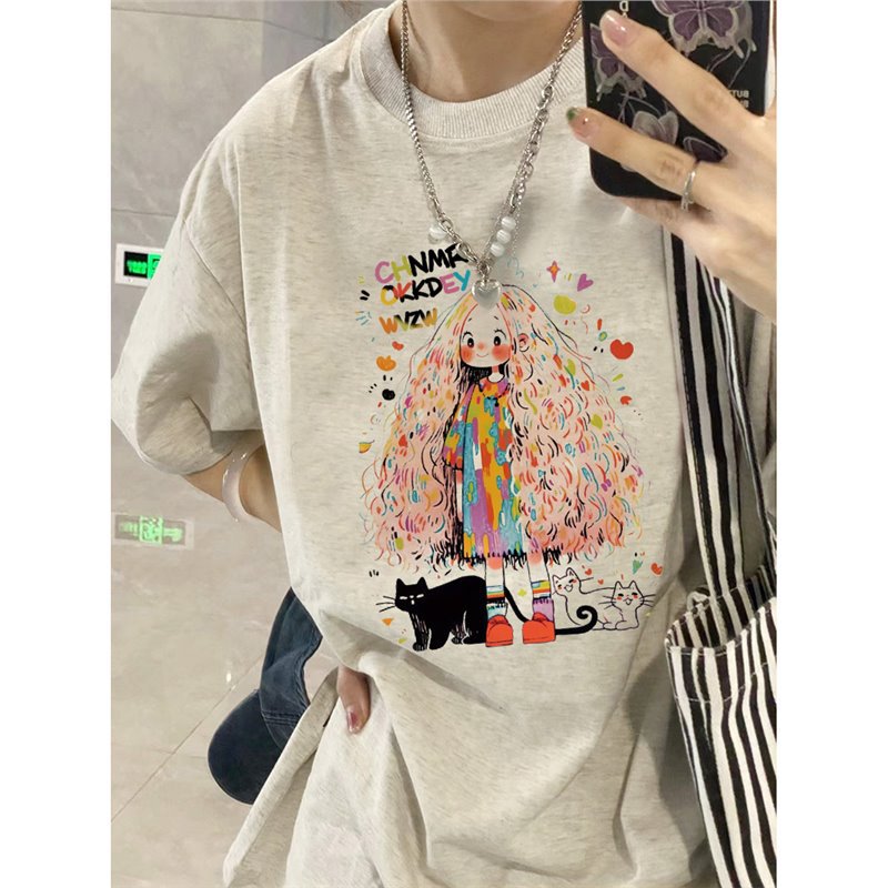 纯棉正肩短袖t恤女夏季新款美式复古宽松设计感小众半袖上衣