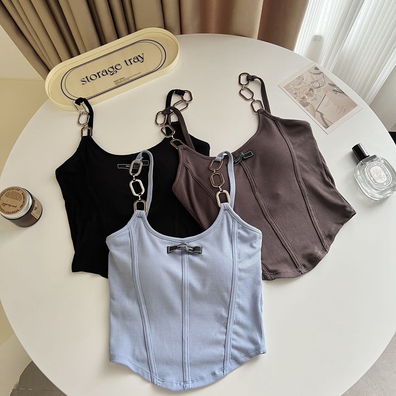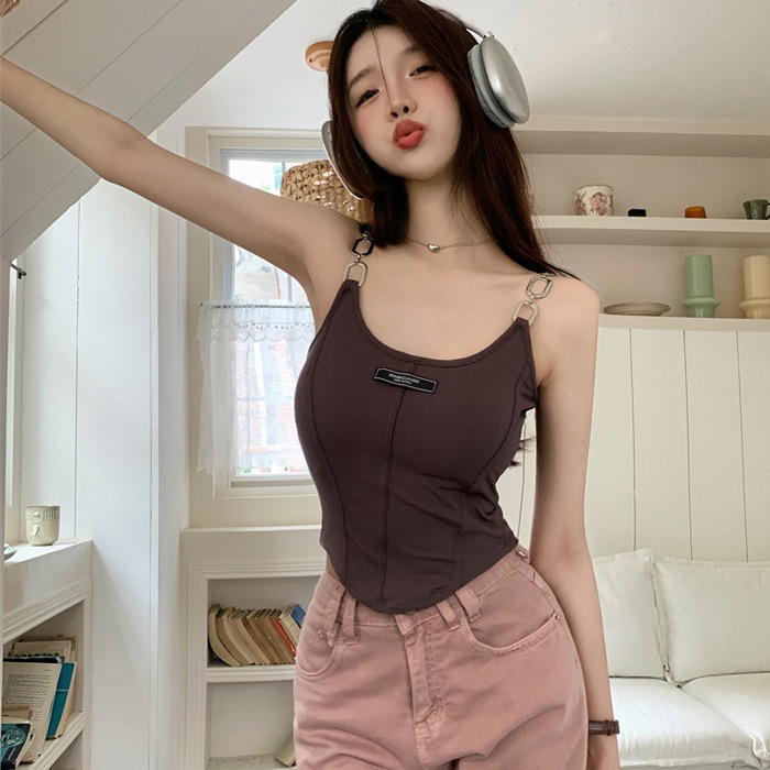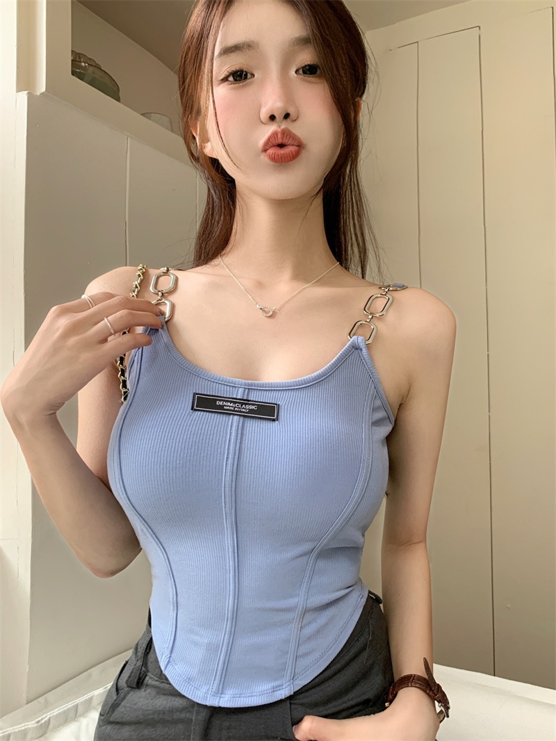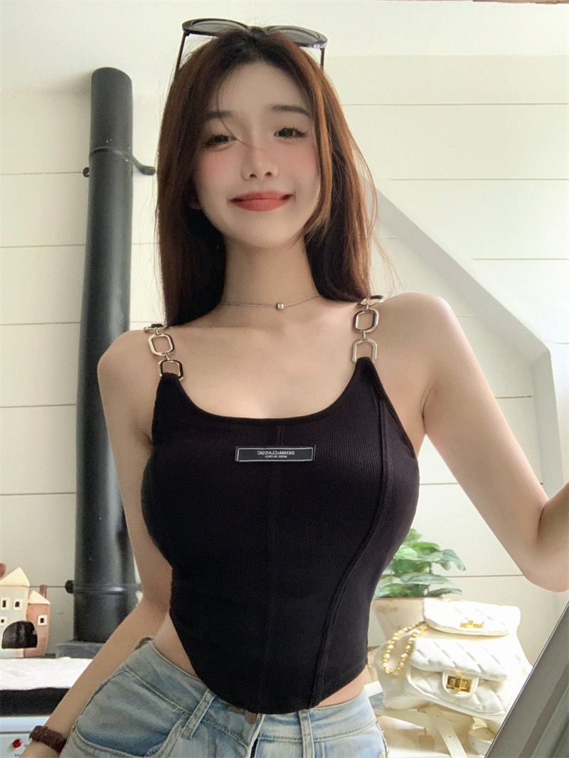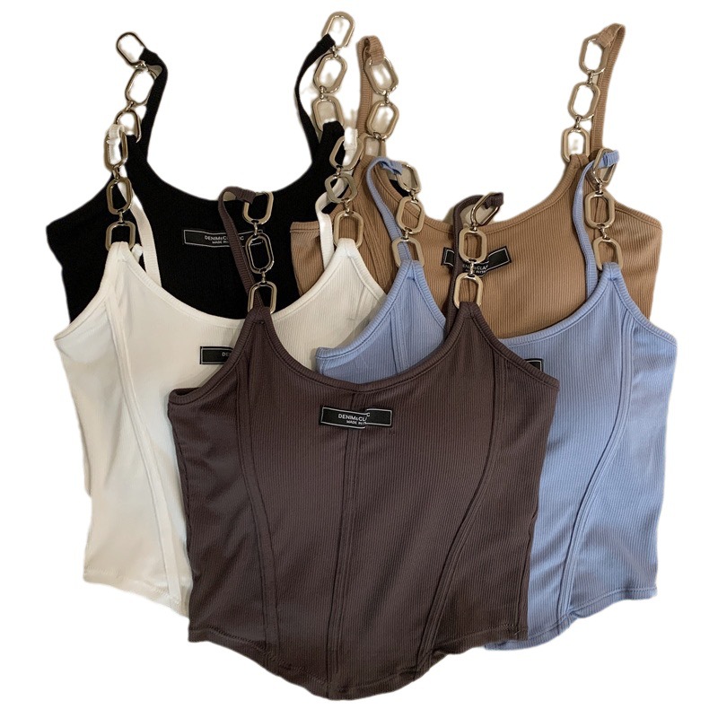 小众链子吊带美背裹胸固定带胸垫短款背心辣妹性感外穿打底上衣女