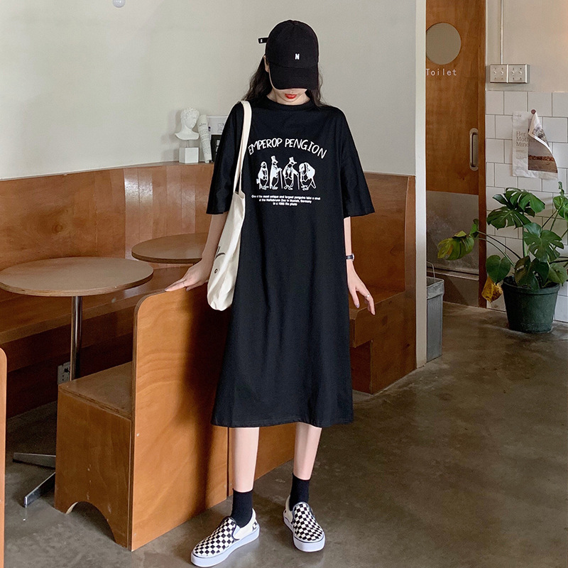 新款孕妇夏季长款连衣裙oversize大码宽松160斤可穿短袖T恤裙