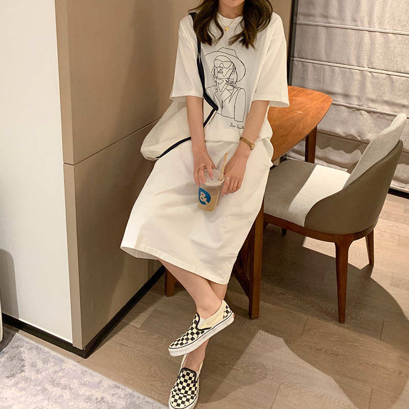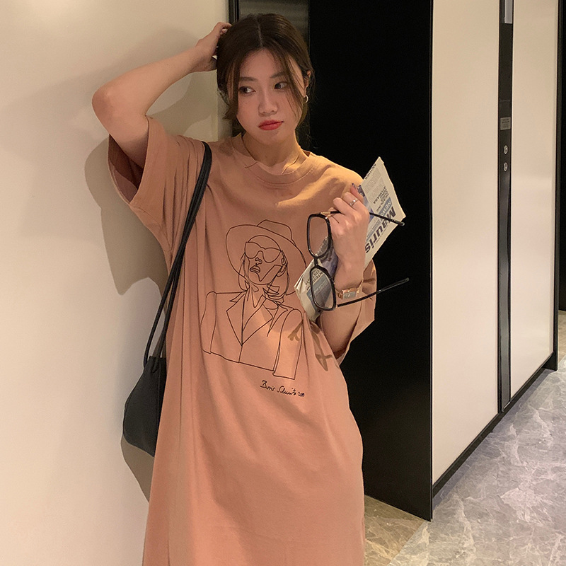 外贸大码女装胖MM160斤可穿宽松遮肉显瘦夏季长款T连衣裙