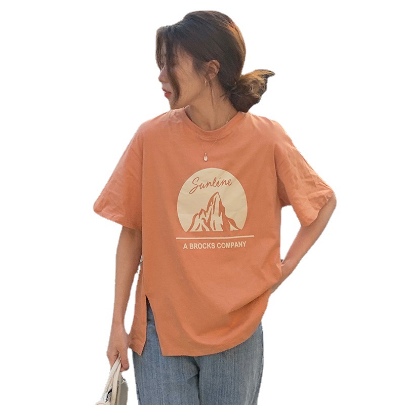 韩版新款宽松显瘦短袖T恤女夏季设计感斜开叉小众圆领上衣潮