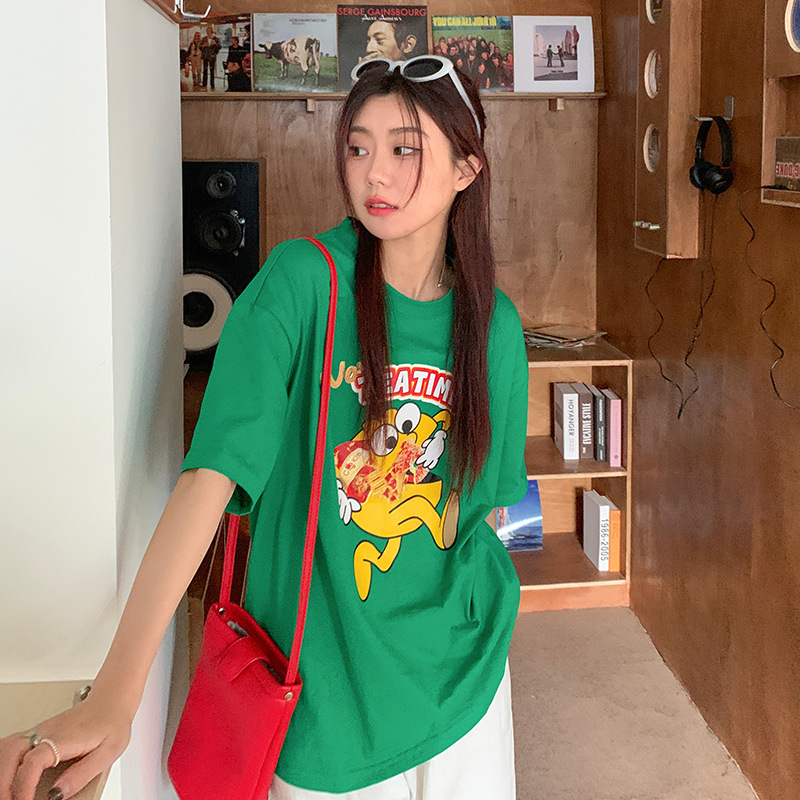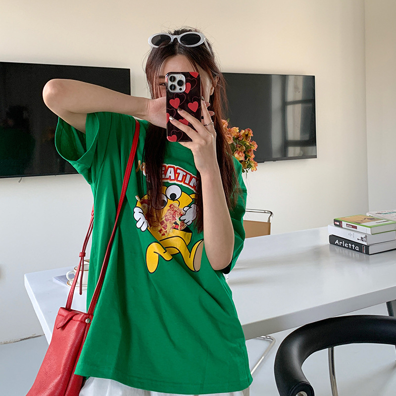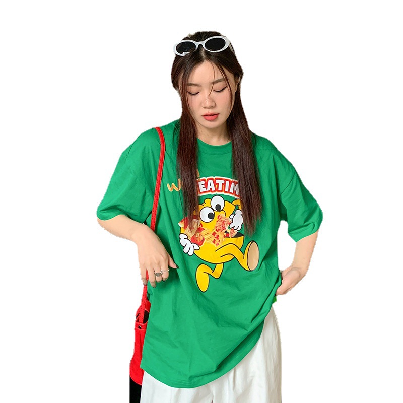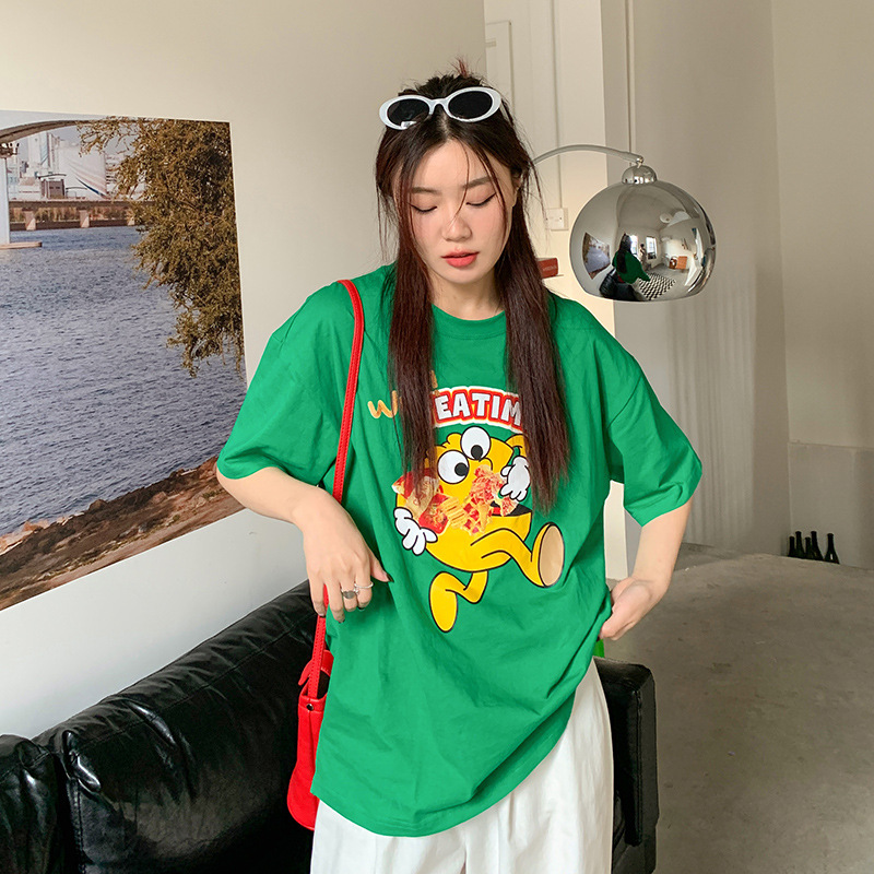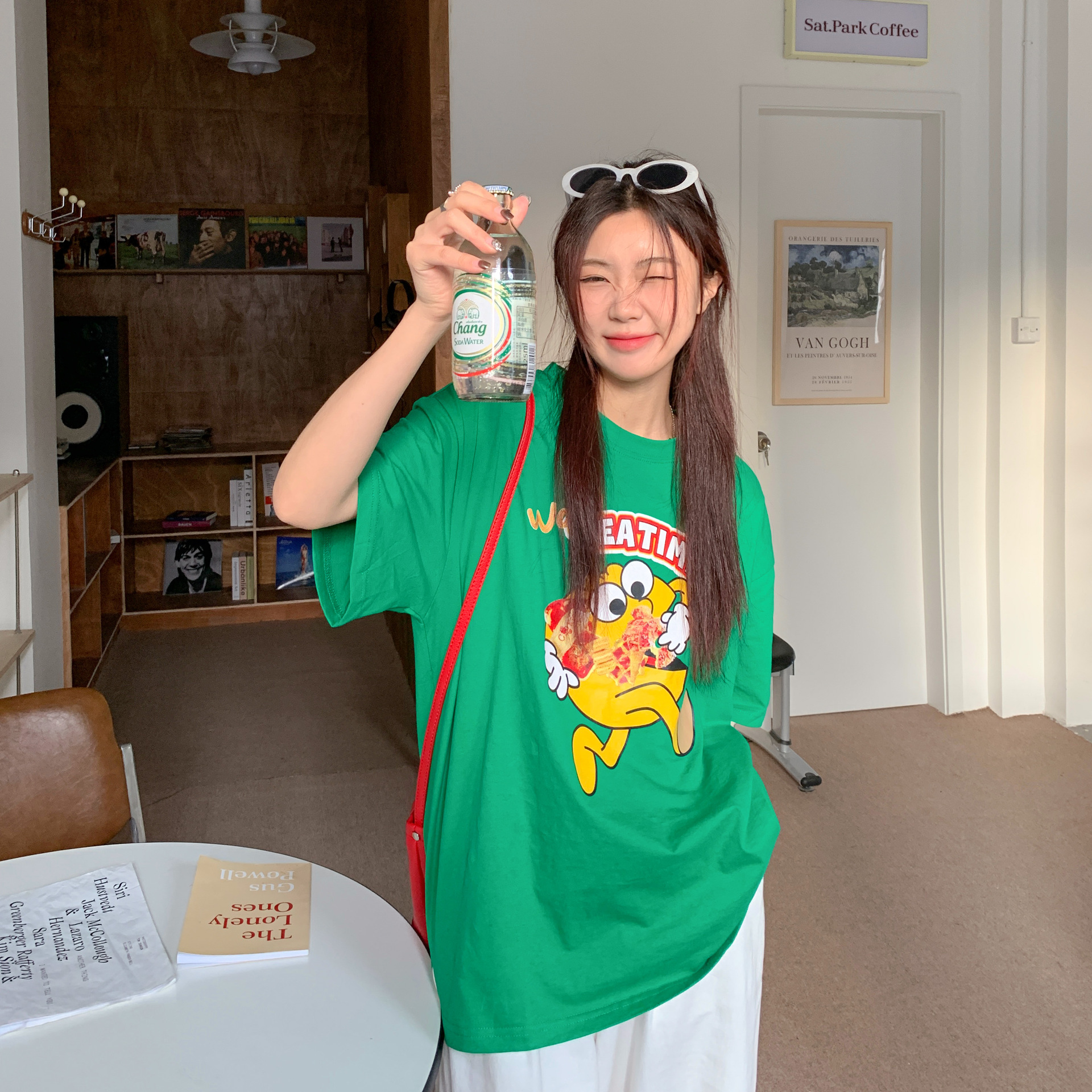 胖MM160斤宽松大码原宿风卡通印花中长款圆领正肩夏季新款短袖T恤