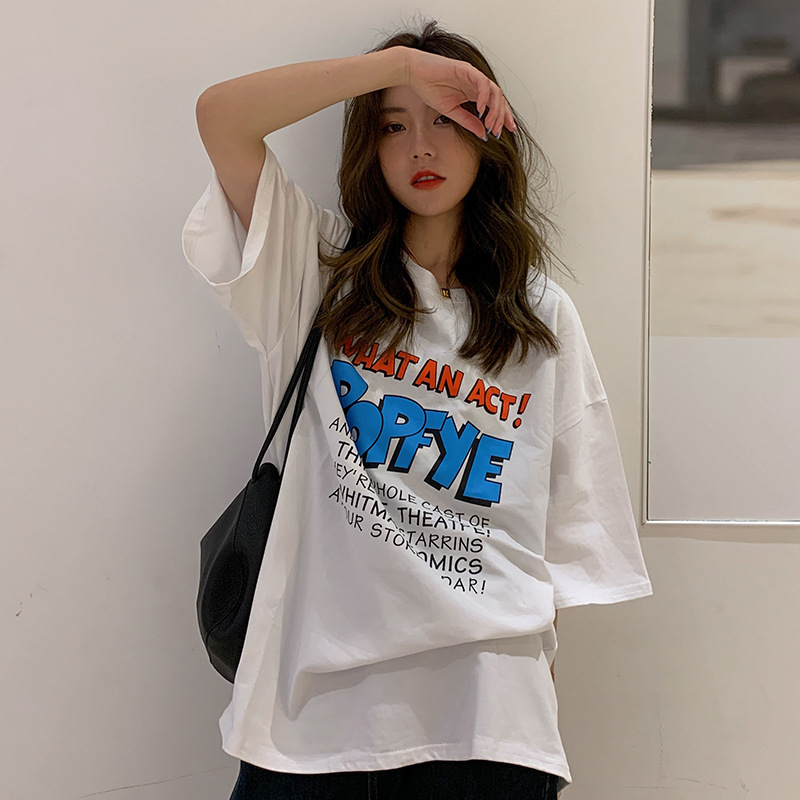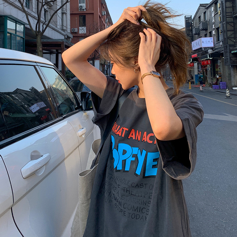 美式复古印花宽松短袖T恤女oversize个性夏季情侣装欧美大码上衣