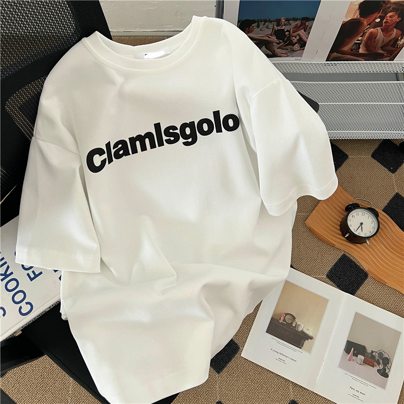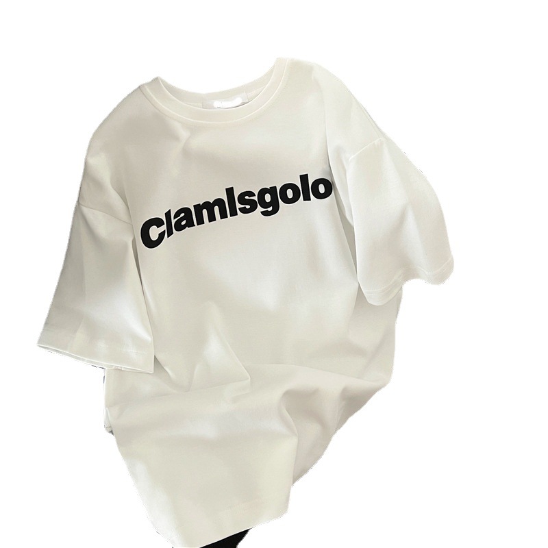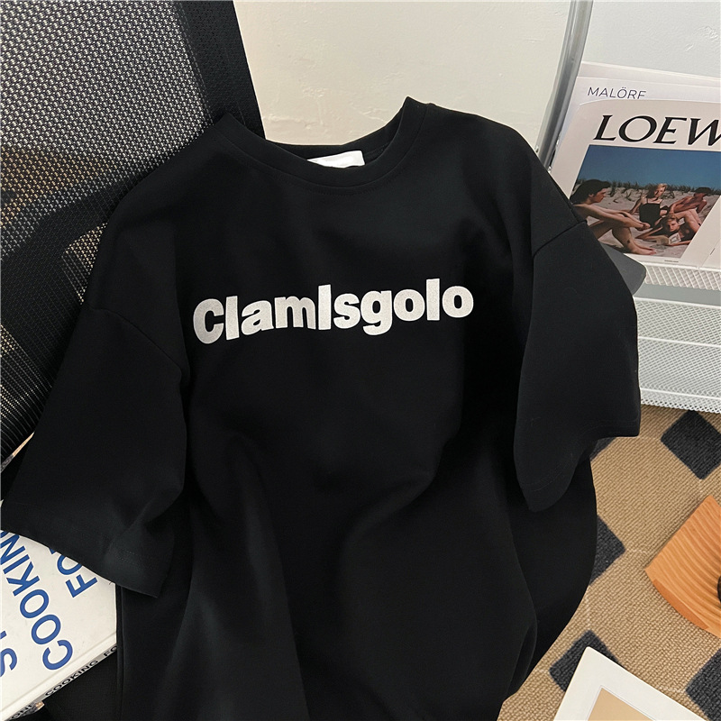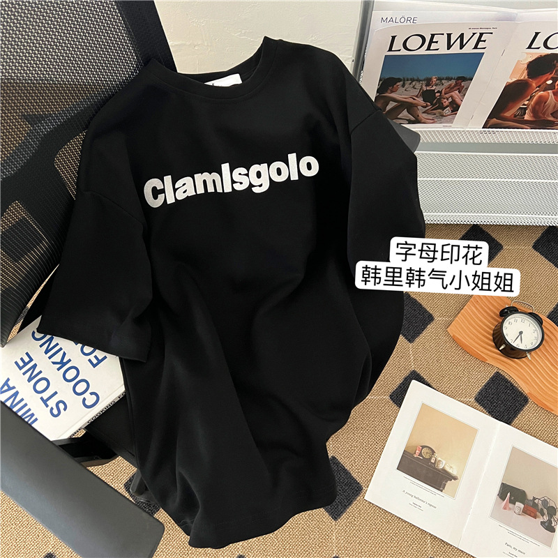 夏季纯棉短袖T恤女日系vintage简约风字母印花宽松圆领正肩上衣潮