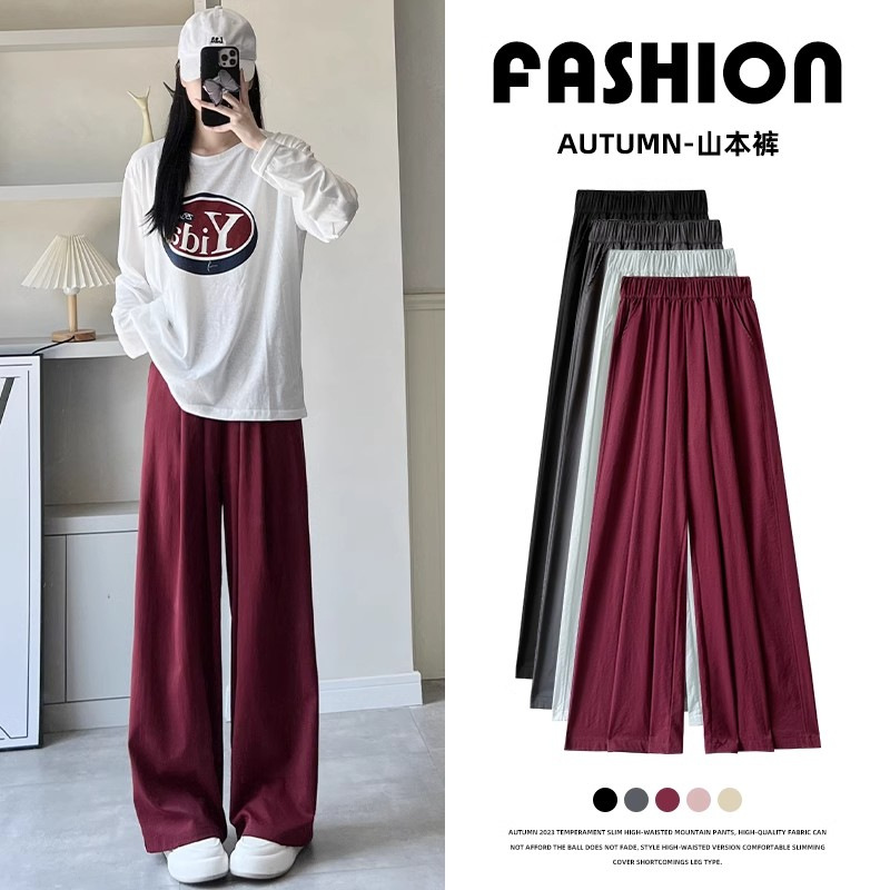 冰感透气阔腿裤子女夏季薄款梨形身材裤子高腰垂感大码褶皱山本裤