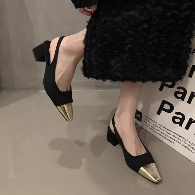 配裙子的凉鞋女夏季新款法式小香风粗跟单鞋气质名媛高跟鞋