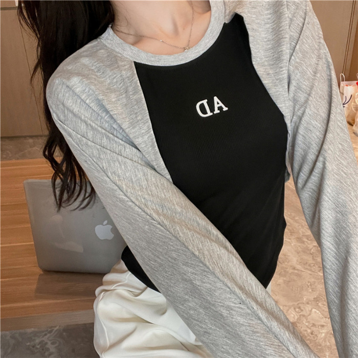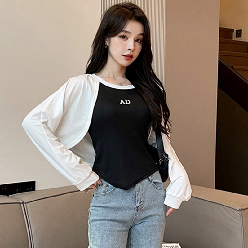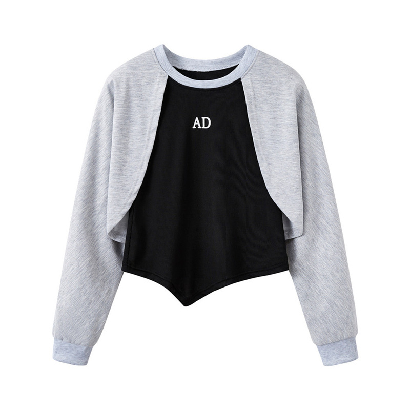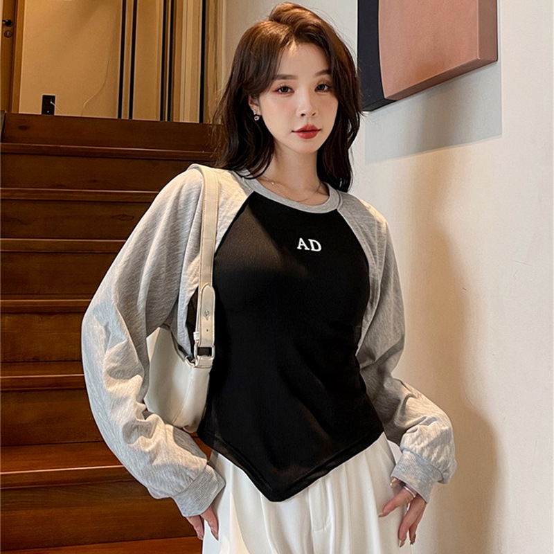 早秋新款不规则设计感辣妹假两件长袖卫衣女春秋百搭洋气上衣