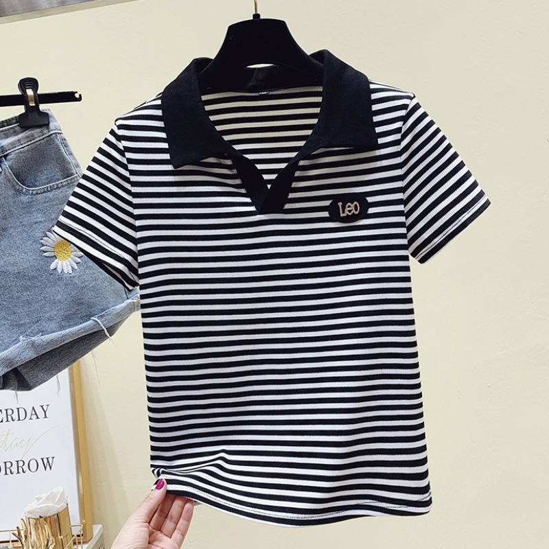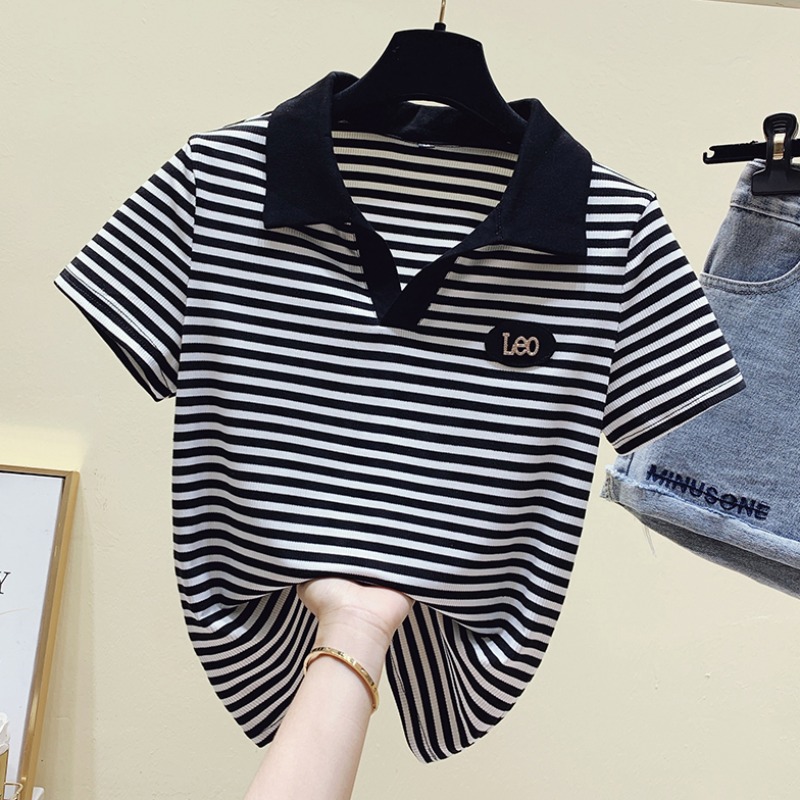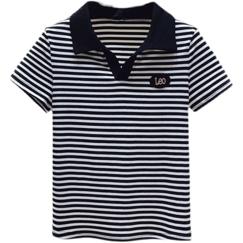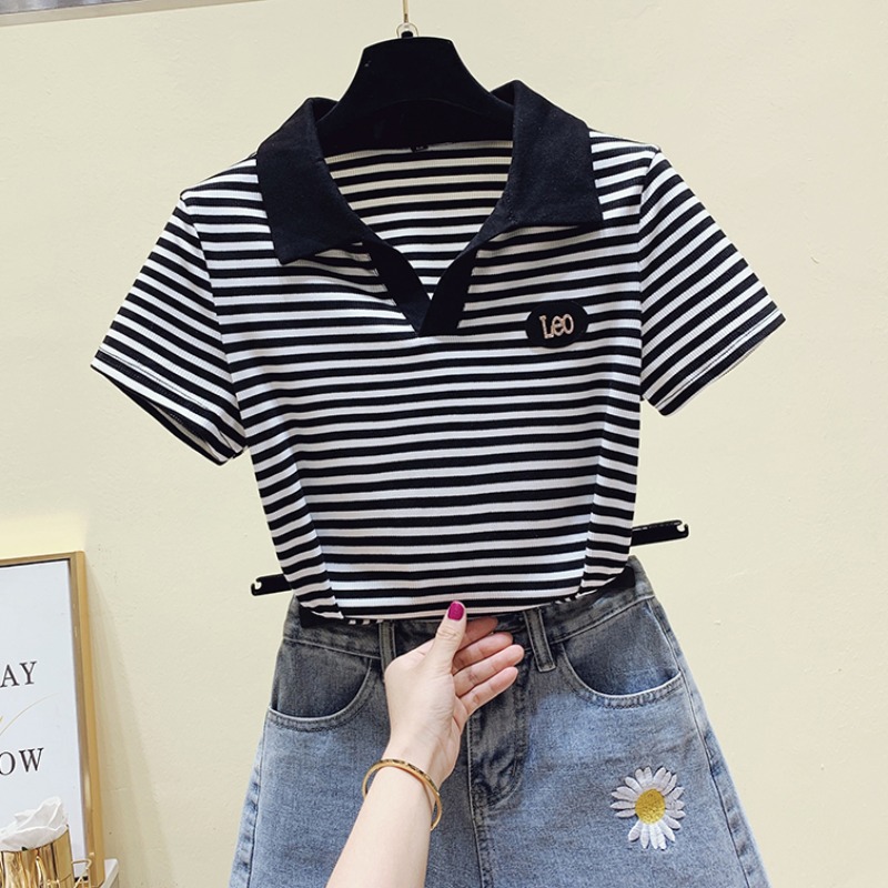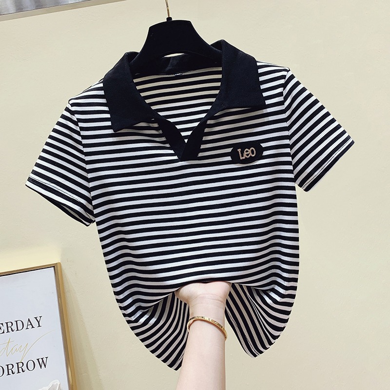 polo衫女装夏天年新款设计感小众修身上衣黑白条纹短袖t恤女