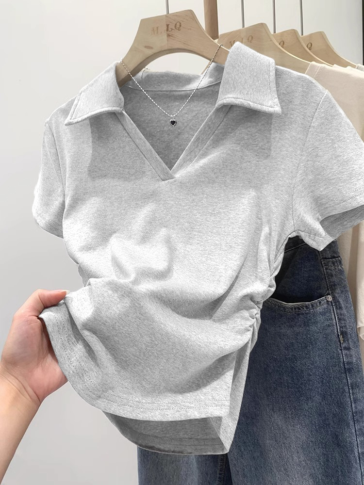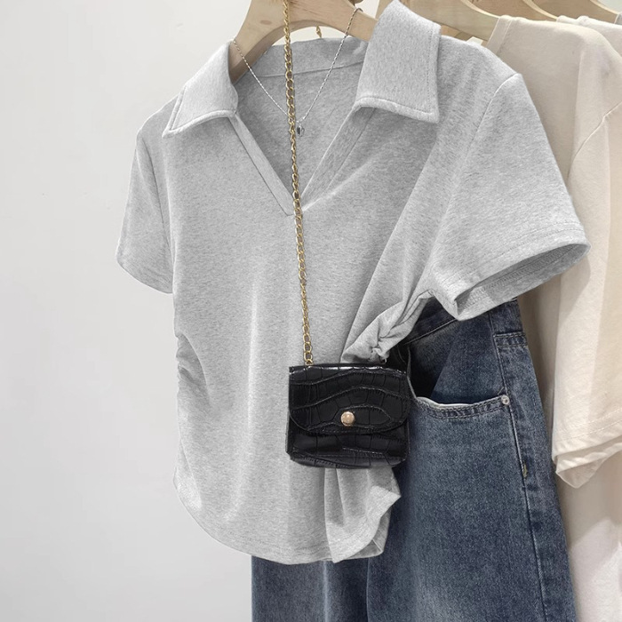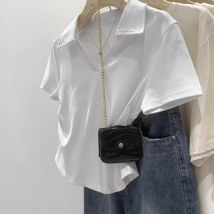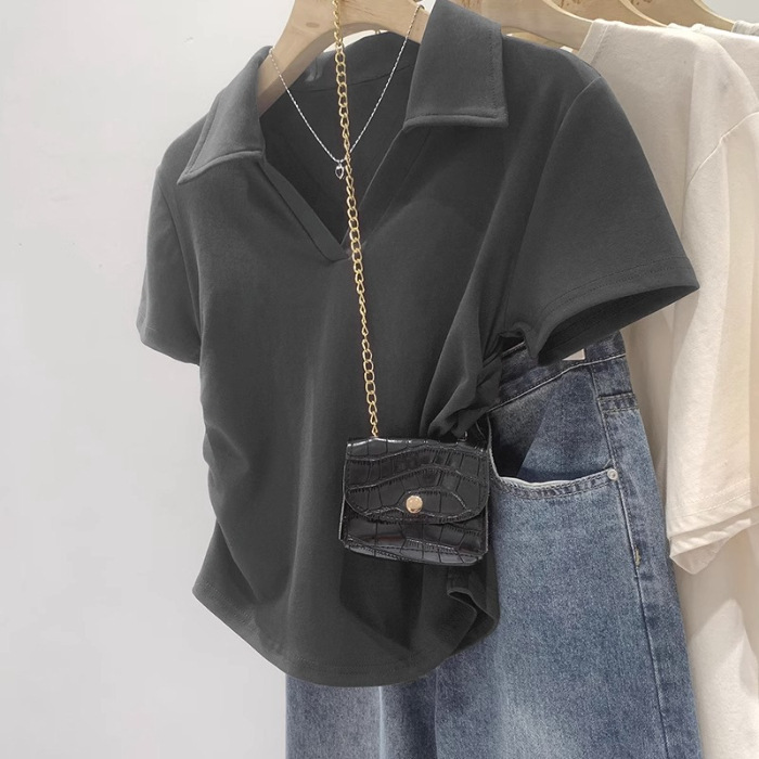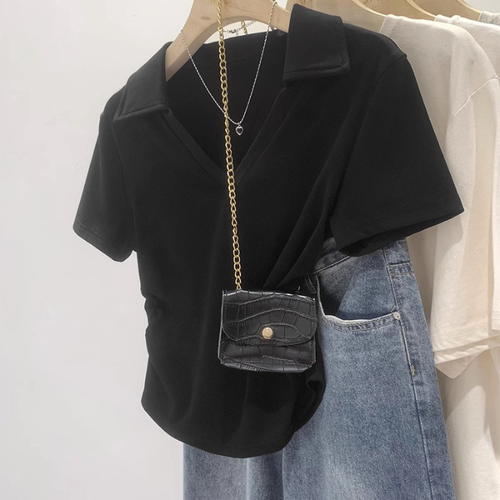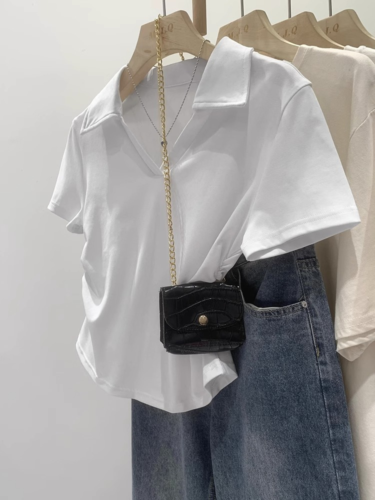 美式短袖纯色内搭T恤女夏季显瘦修身POLO设计感小众辣妹紧身上衣
