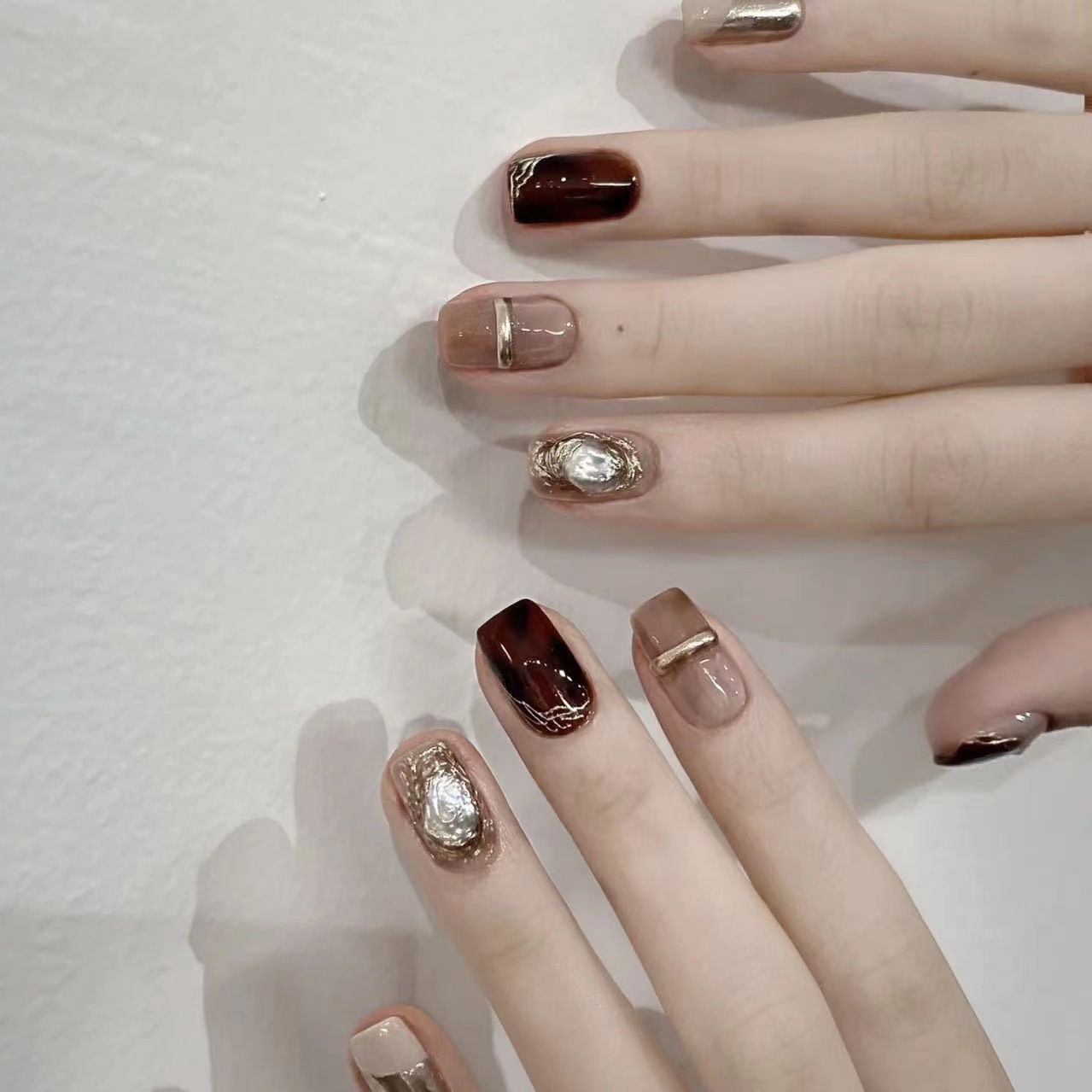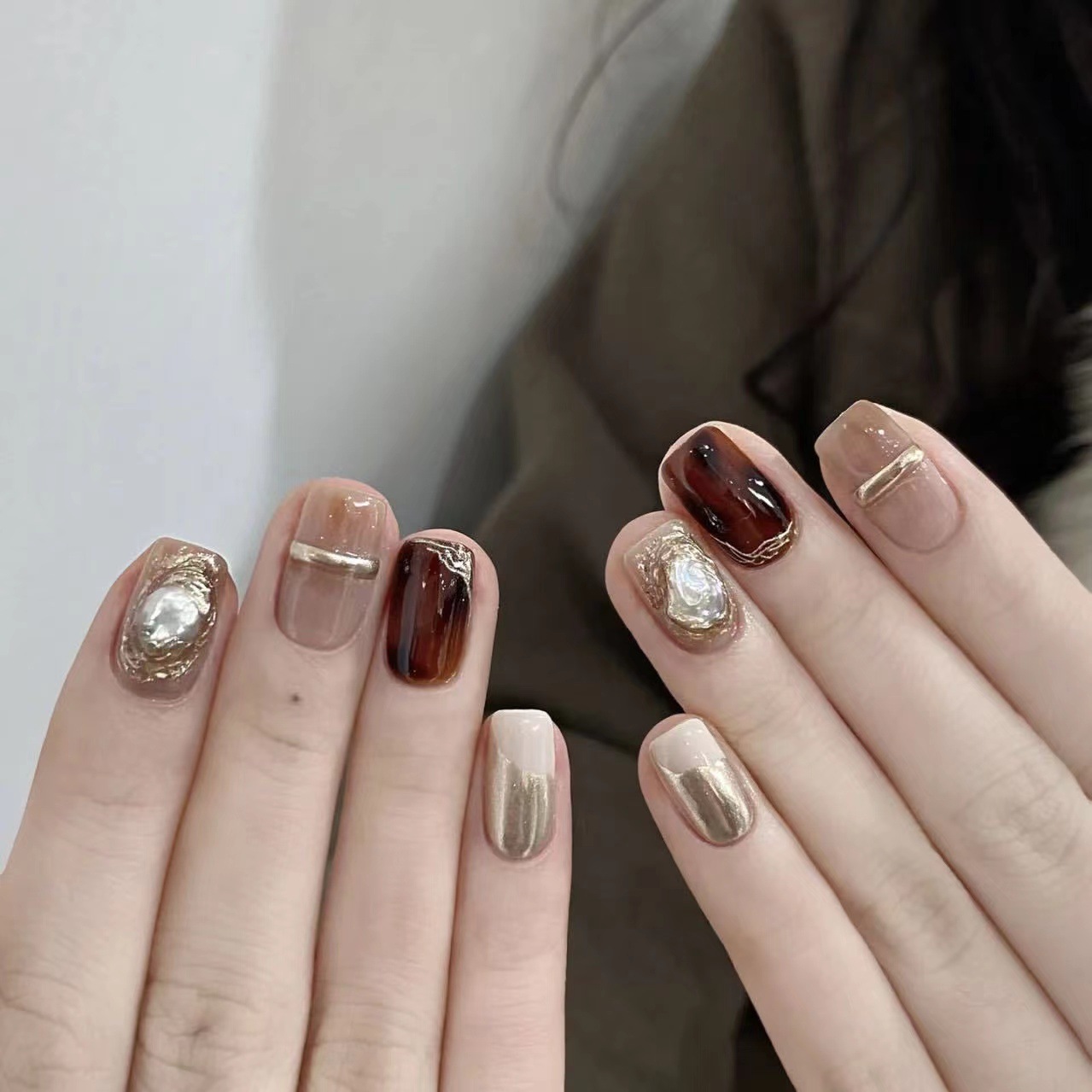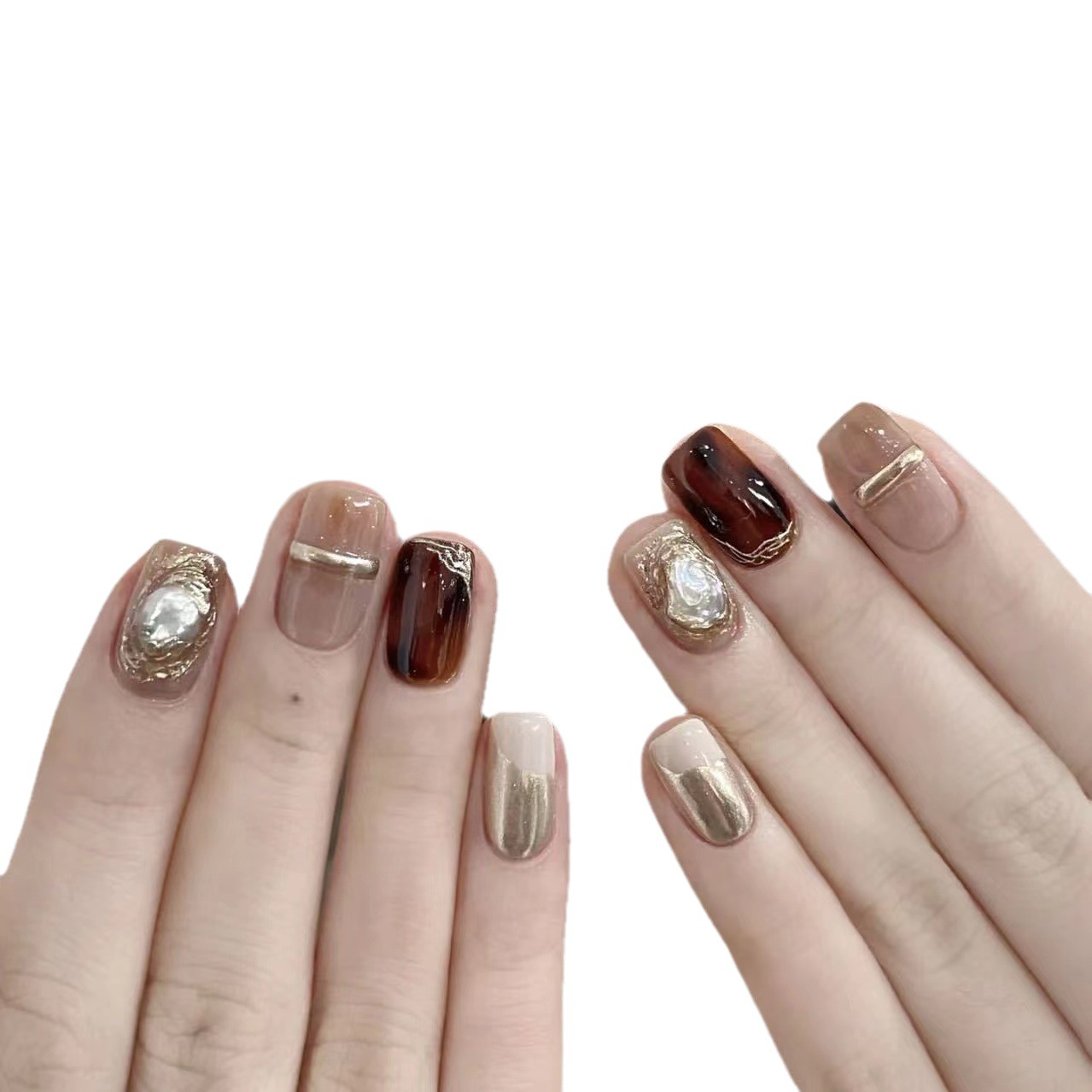 纯手工光疗穿戴甲琥珀贝壳成品重复使用美甲贴片可拆卸