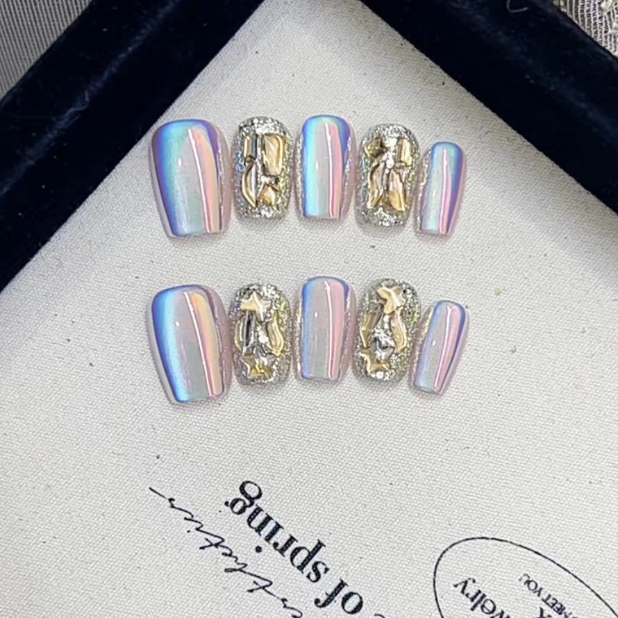 纯手工光疗穿戴甲梦桥成品重复使用美甲贴片可拆卸